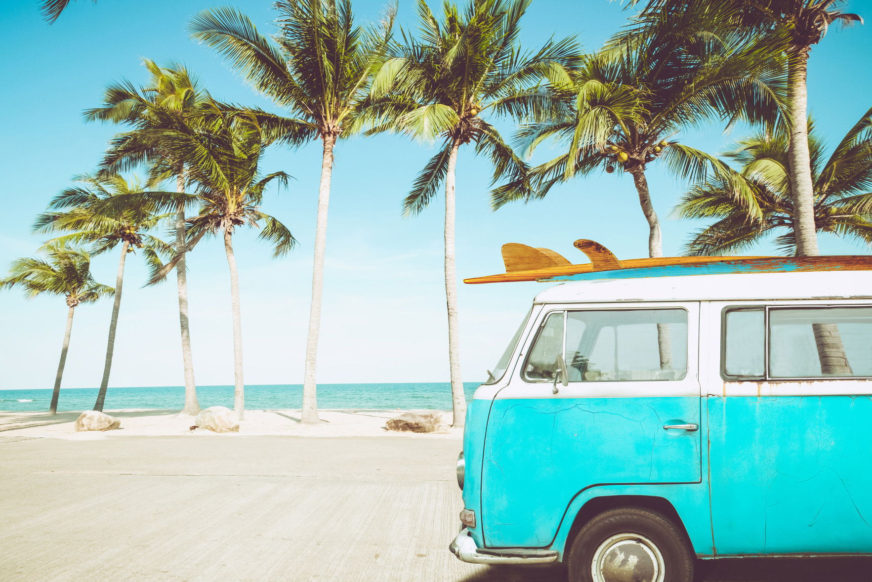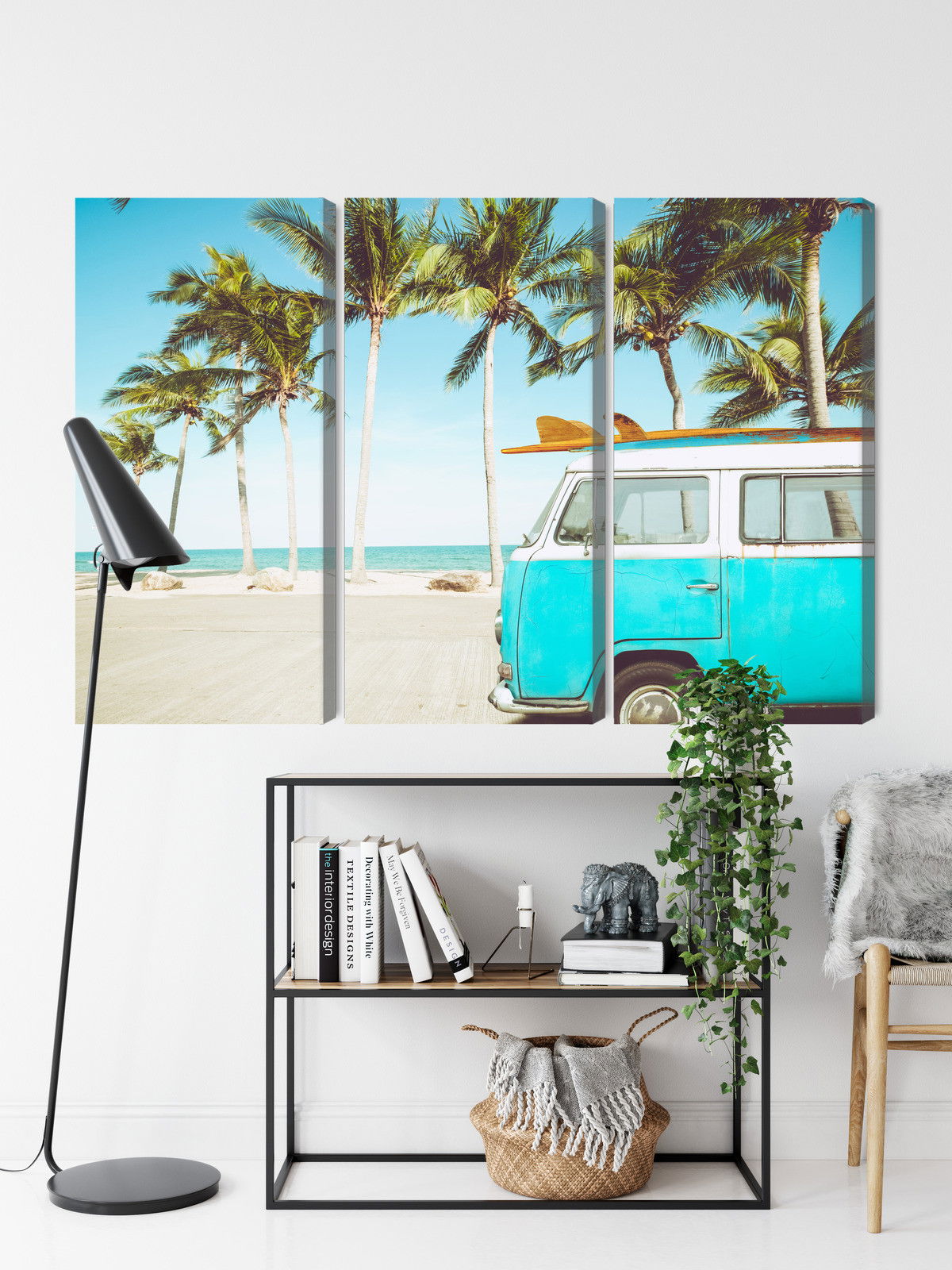Ljuddämpande tavla – Retro car on the beach 3d för lugnare rum och mjukare akustik