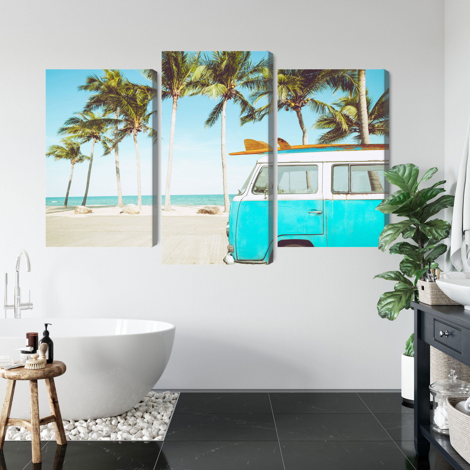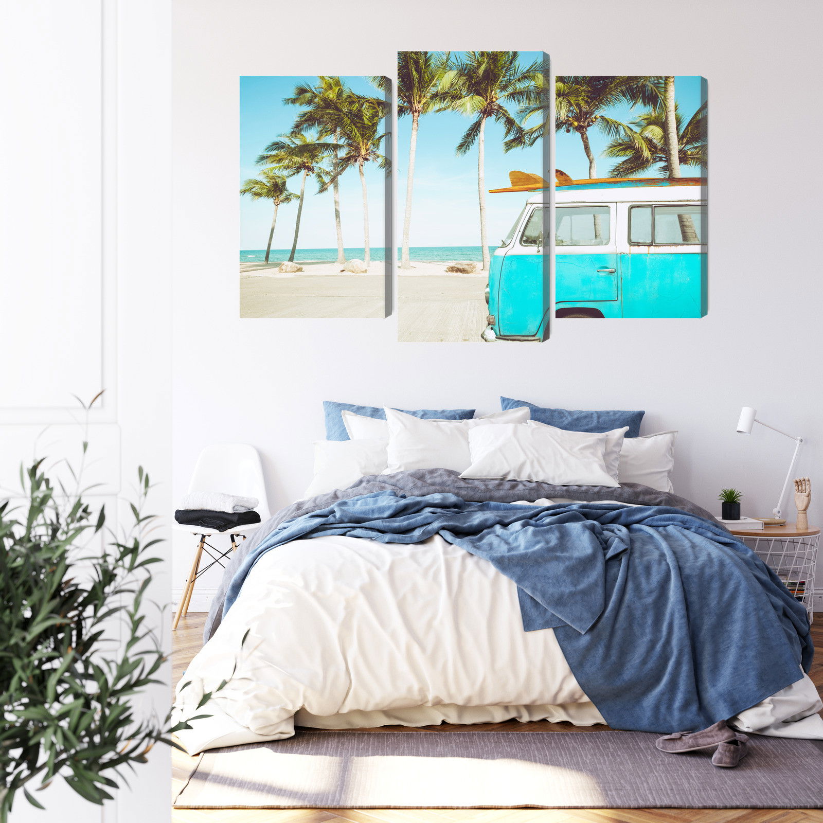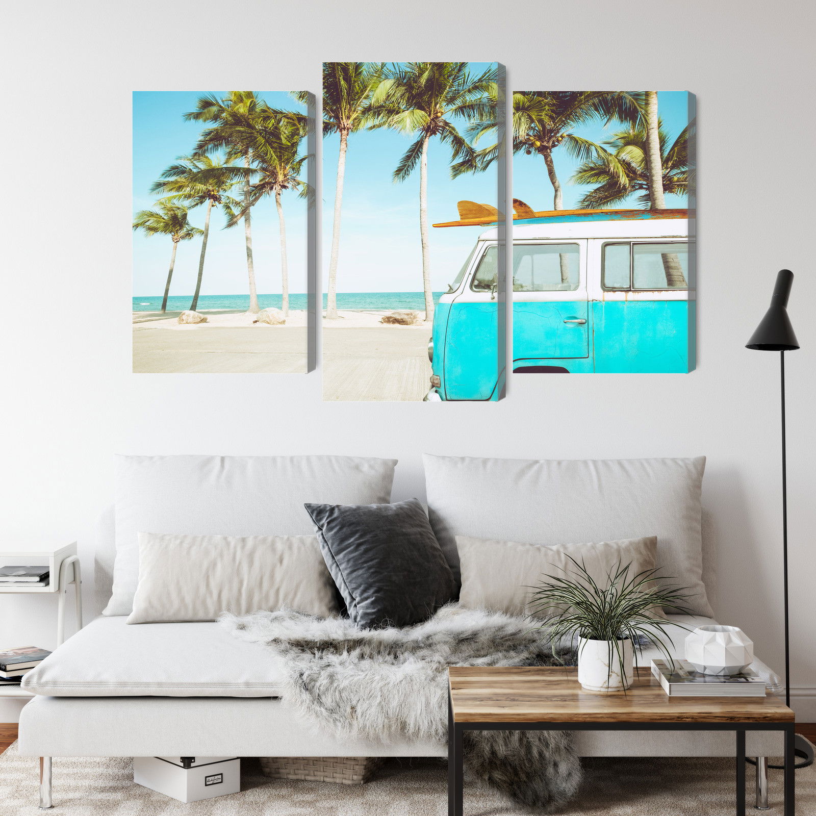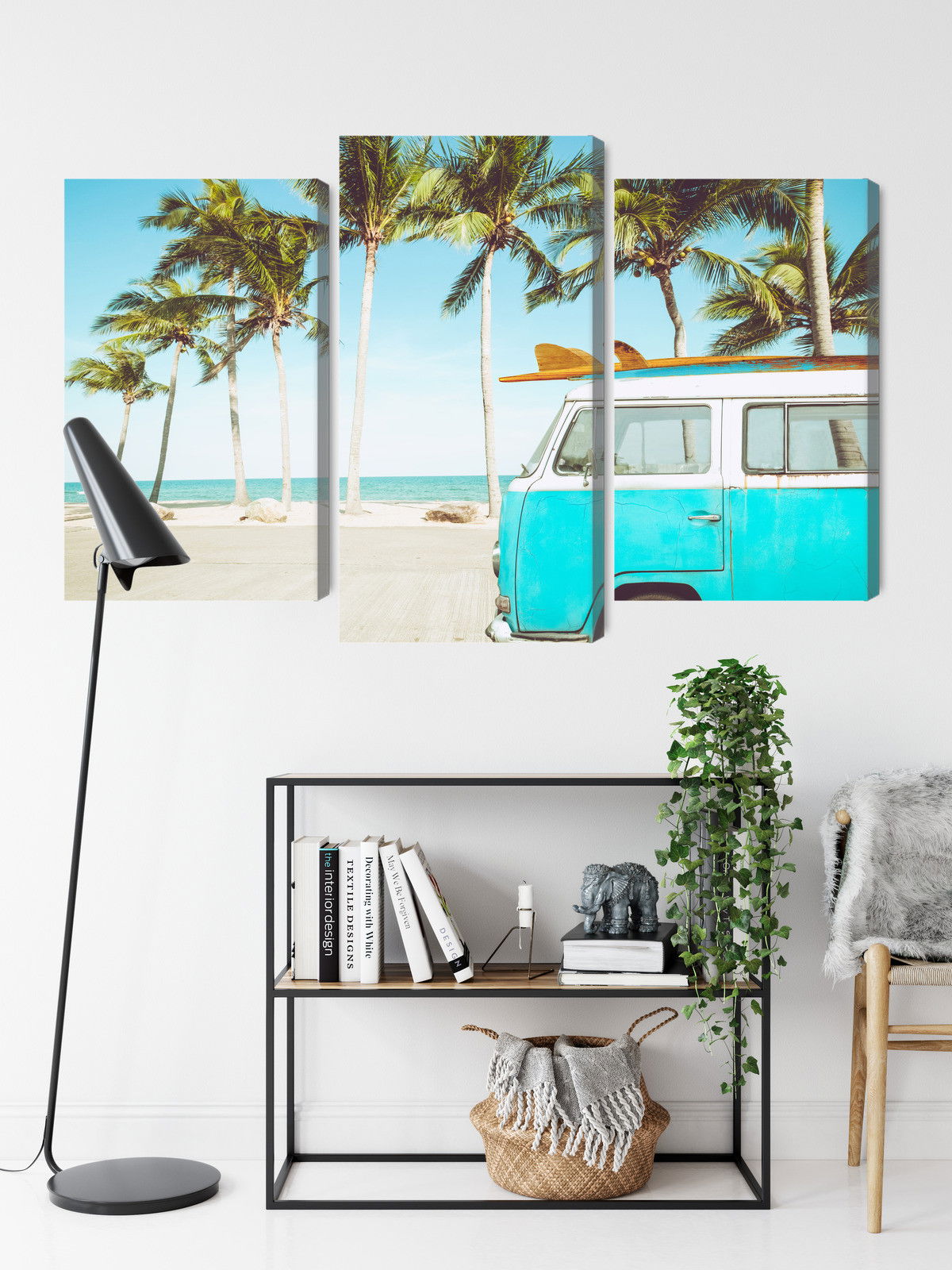 Ljuddämpande tavla – Retro car on the beach 3d för lugnare rum och mjukare akustik