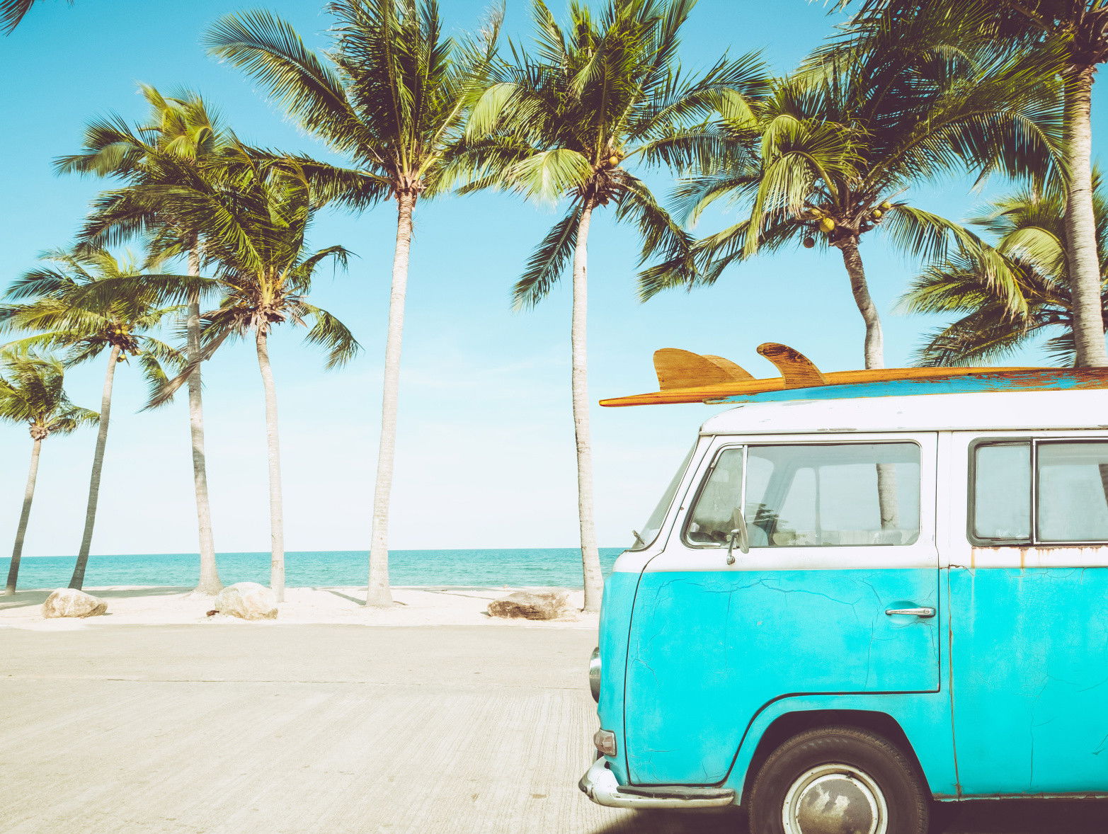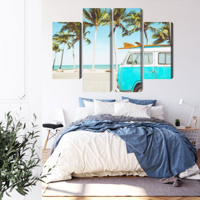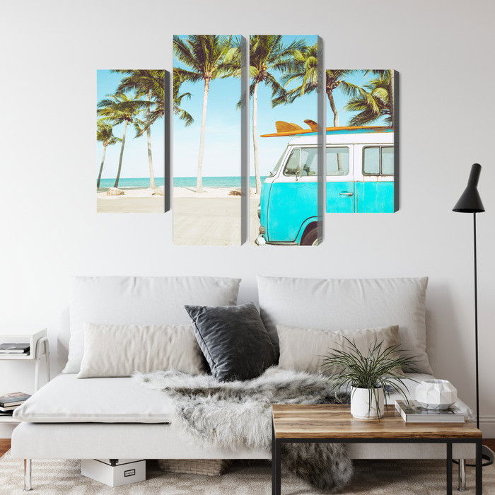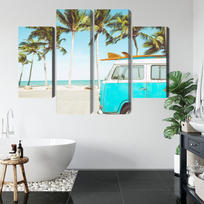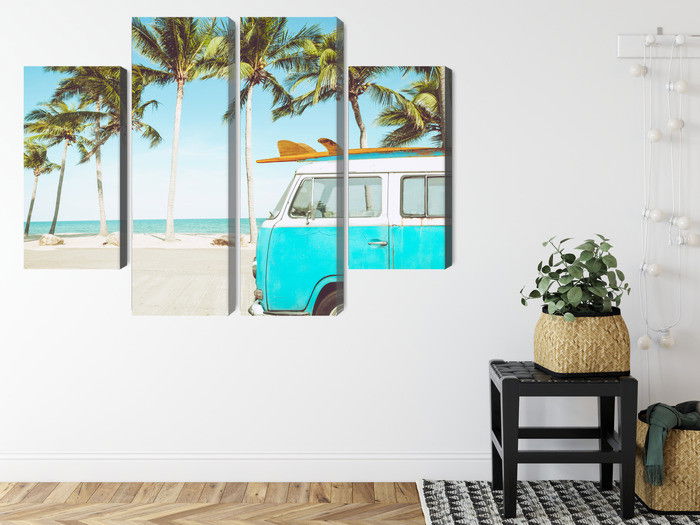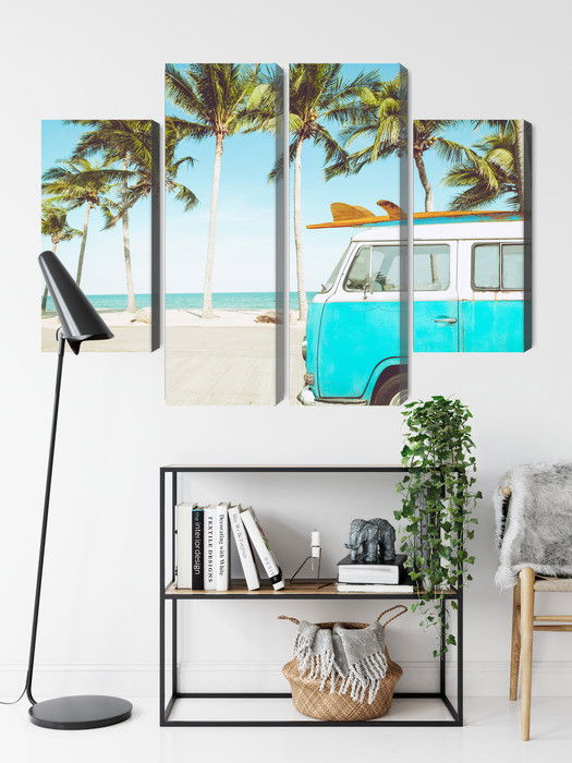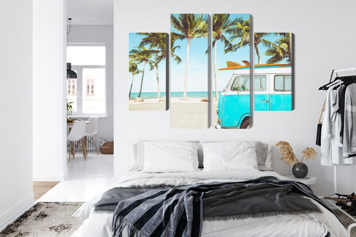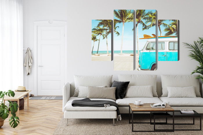 Ljuddämpande tavla – Retro car on the beach 3d för lugnare rum och mjukare akustik