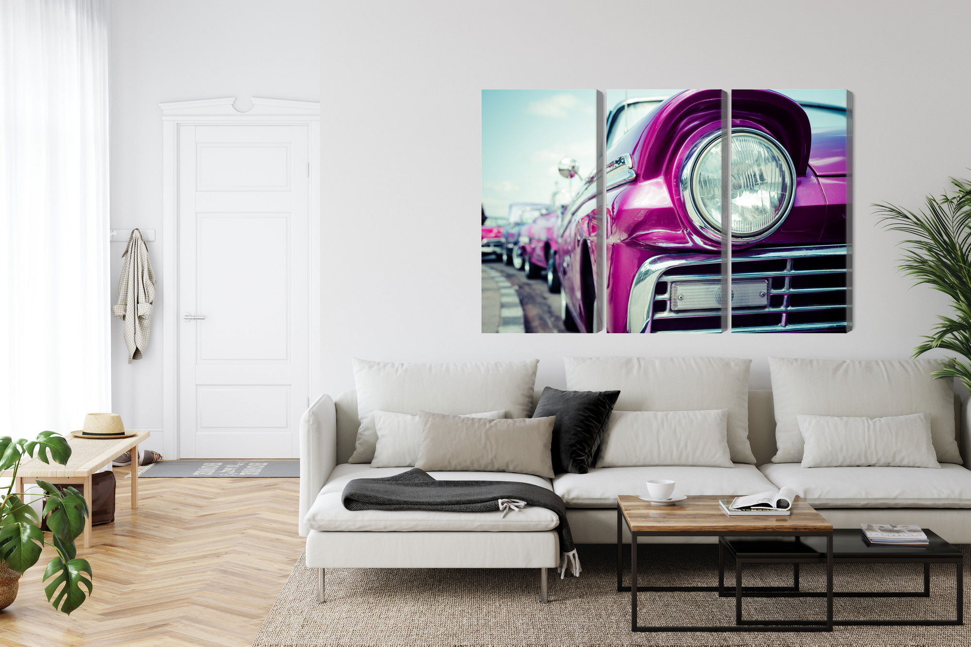 Motivet Retro style car headlight återges med hög färgprecision och detaljrikedom tack vare HP Latex-teknologi. Trycket sker med vattenbaserade, luktfria och GREENGUARD Gold-certifierade bläck som ger en upplösning på upp till 300 DPI. Färgerna är UV-beständiga och behåller sin styrka även i ljusa rum, vilket gör tavlan lämplig för både hem- och offentliga miljöer.