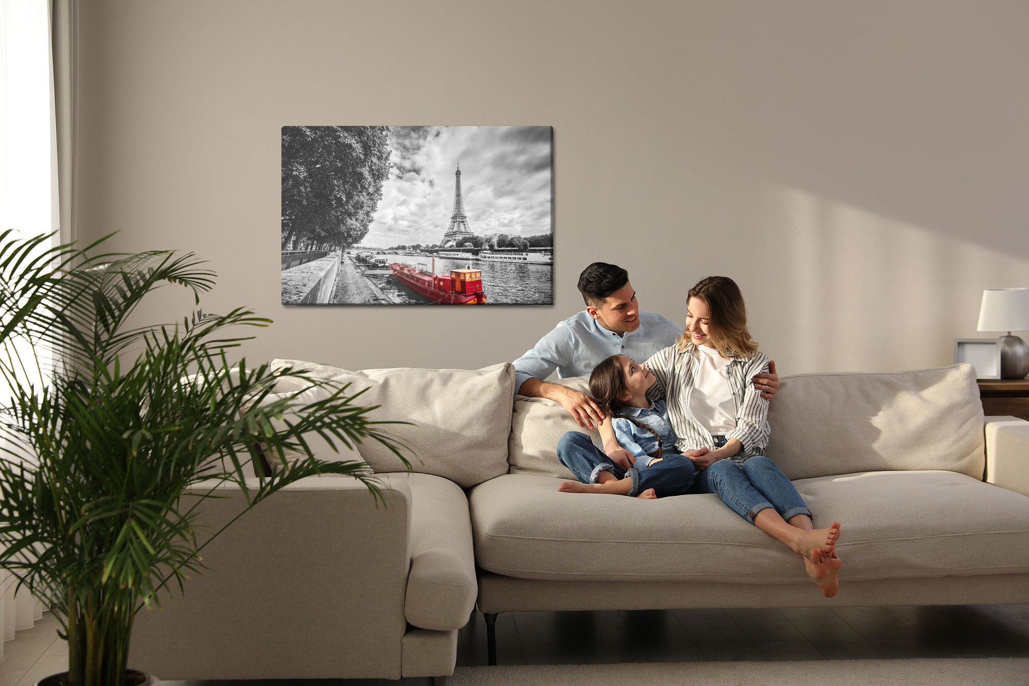 Motivet River seine in Paris återges med hög färgprecision och detaljrikedom tack vare HP Latex-teknologi. Trycket sker med vattenbaserade, luktfria och GREENGUARD Gold-certifierade bläck som ger en upplösning på upp till 300 DPI. Färgerna är UV-beständiga och behåller sin styrka även i ljusa rum, vilket gör tavlan lämplig för både hem- och offentliga miljöer.