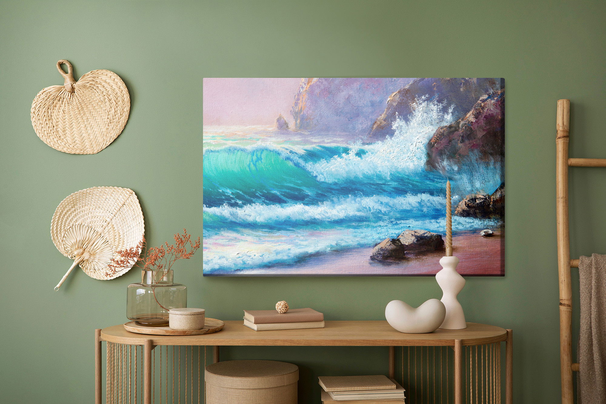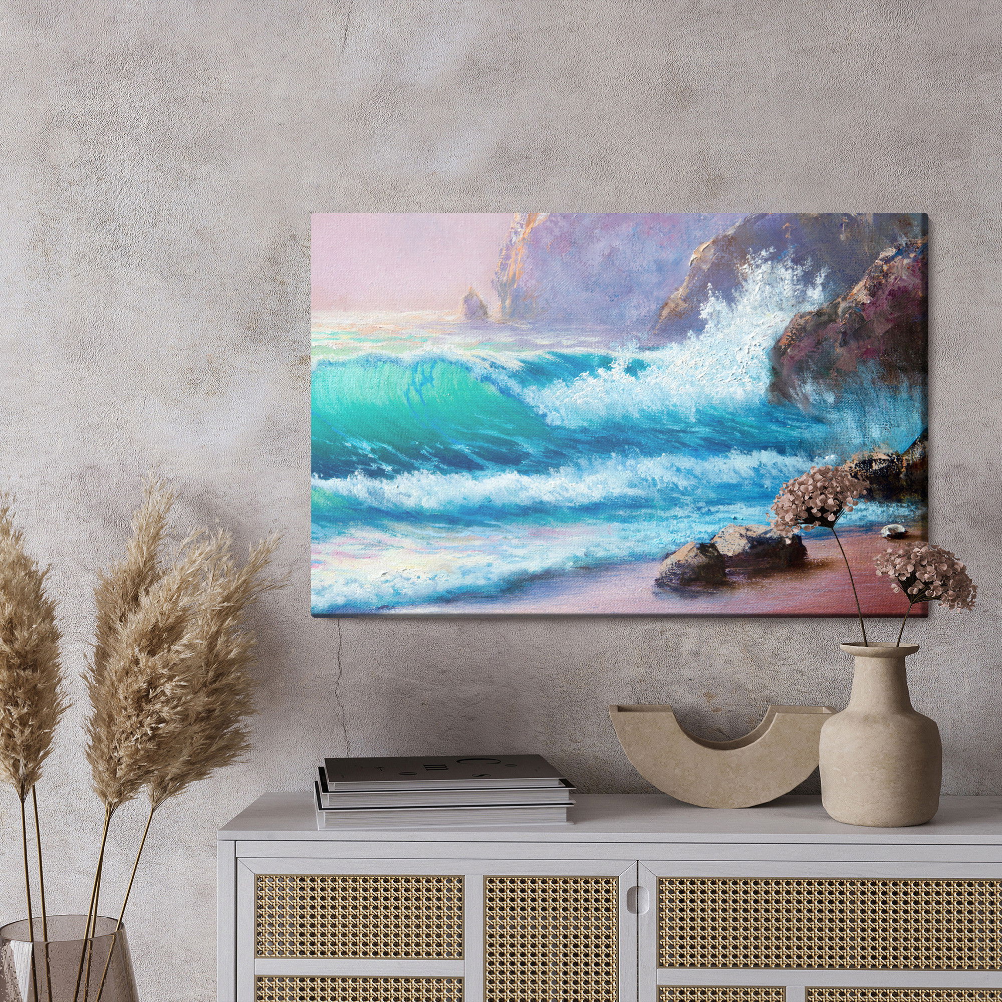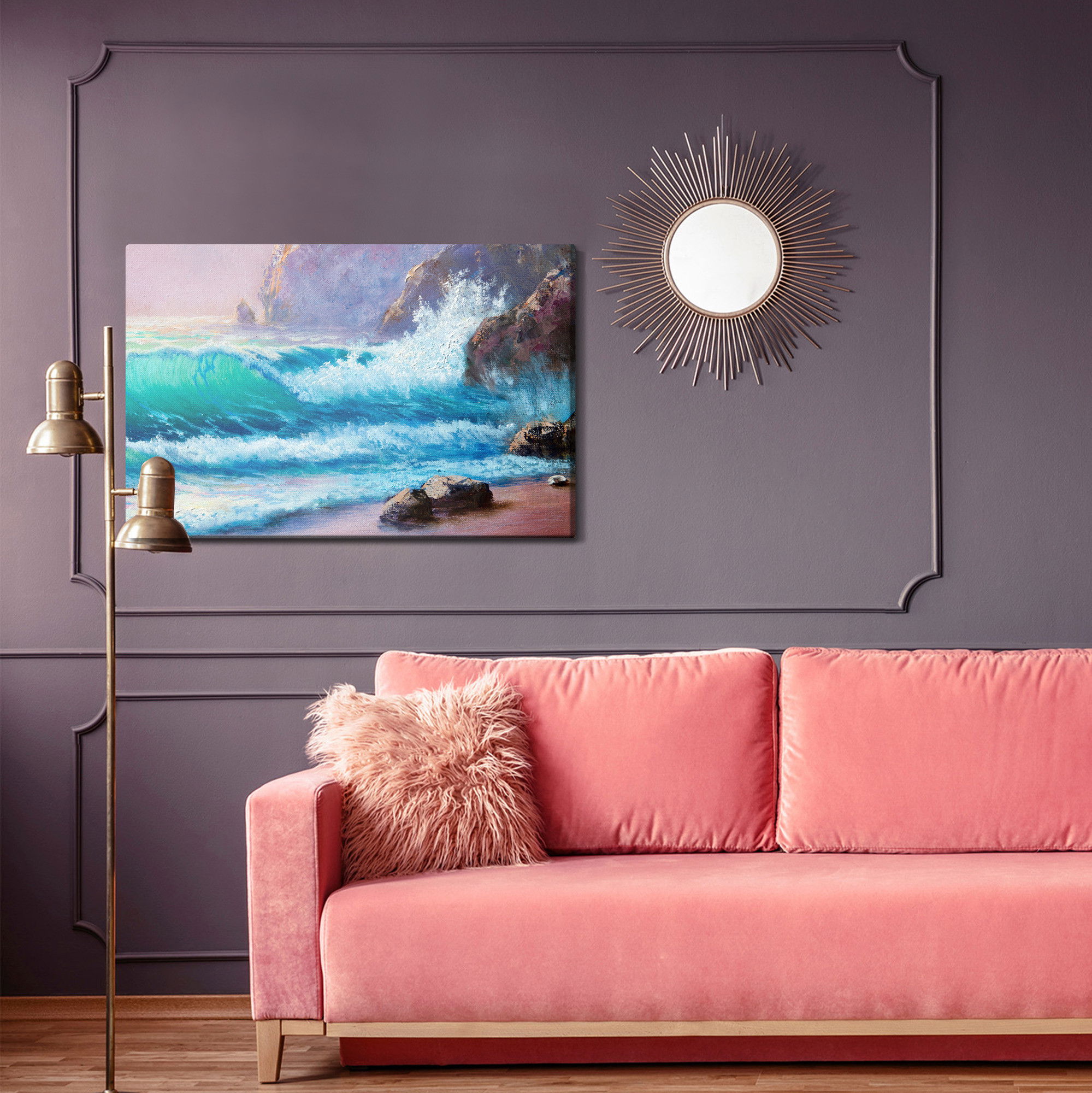 Placera tavlan där du upplever mycket eko eller hög ljudnivå, till exempel i öppna planlösningar, hemmakontor eller sociala ytor. Motiv i denna kategori gör sig särskilt bra i rum där du vill skapa en genomtänkt och sammanhängande känsla. Motiv med hav, vatten och horisonter ger rummet en lugn, djup känsla där mjuka färgskiftningar och ljusreflektioner förstärker atmosfären.