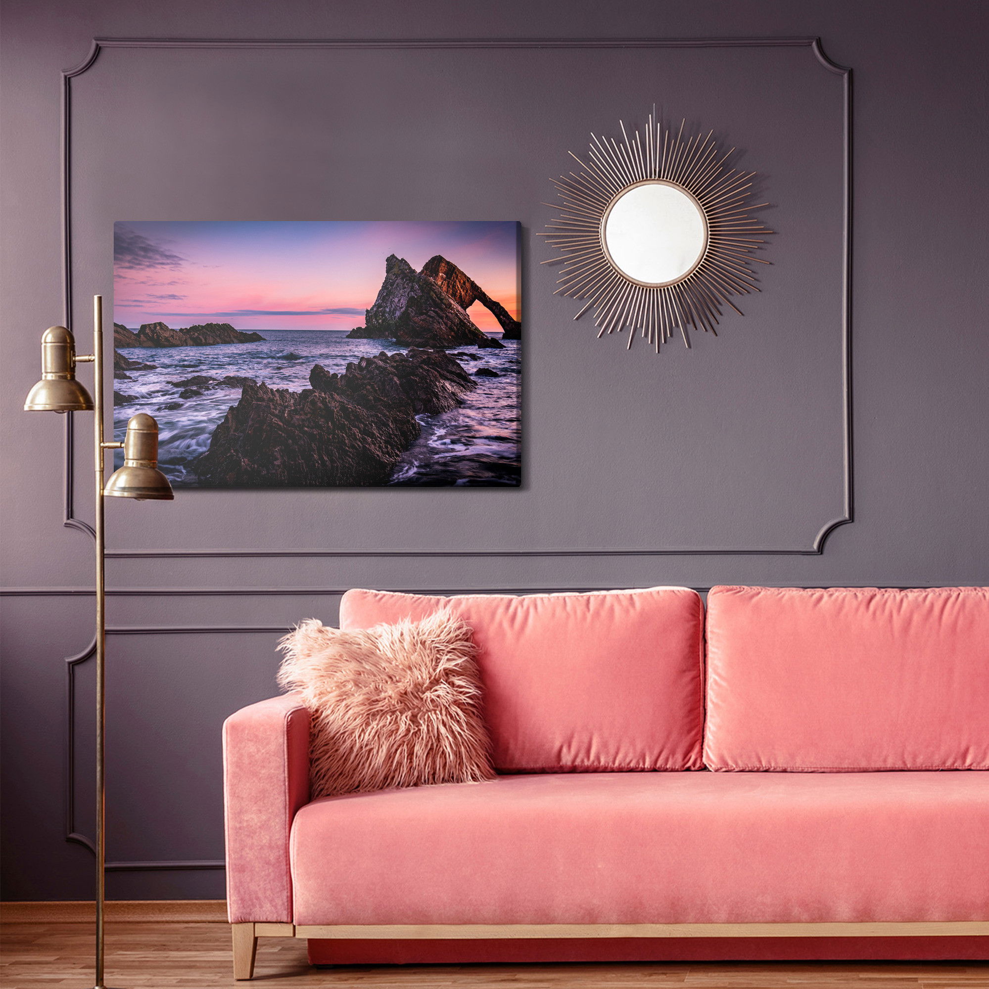 Motivet Rocks in the sea återges med hög färgprecision och detaljrikedom tack vare HP Latex-teknologi. Trycket sker med vattenbaserade, luktfria och GREENGUARD Gold-certifierade bläck som ger en upplösning på upp till 300 DPI. Färgerna är UV-beständiga och behåller sin styrka även i ljusa rum, vilket gör tavlan lämplig för både hem- och offentliga miljöer.