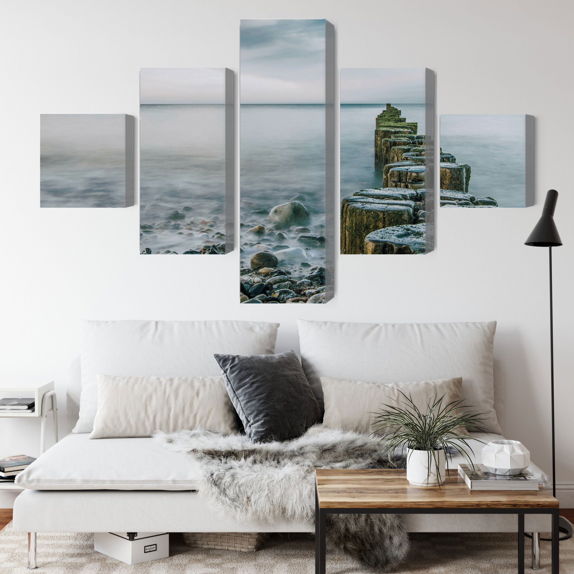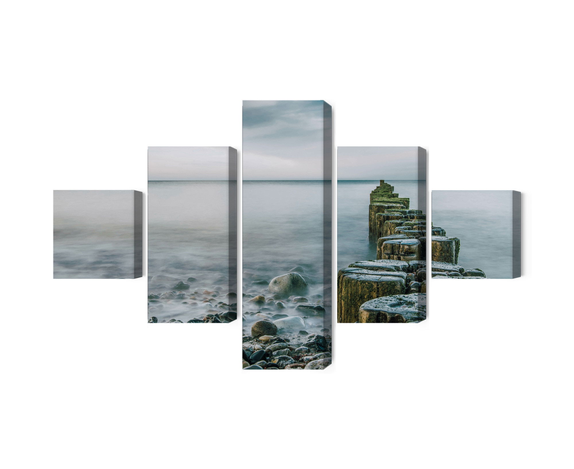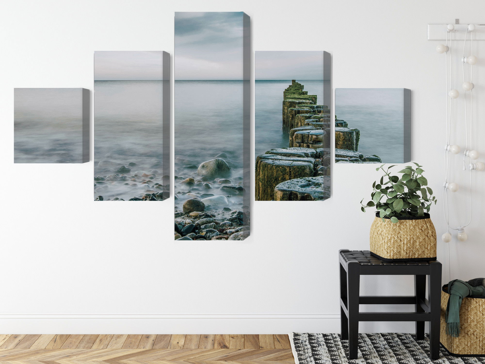 Ljuddämpande tavla – Rocky beach and 3d wooden för lugnare rum och mjukare akustik