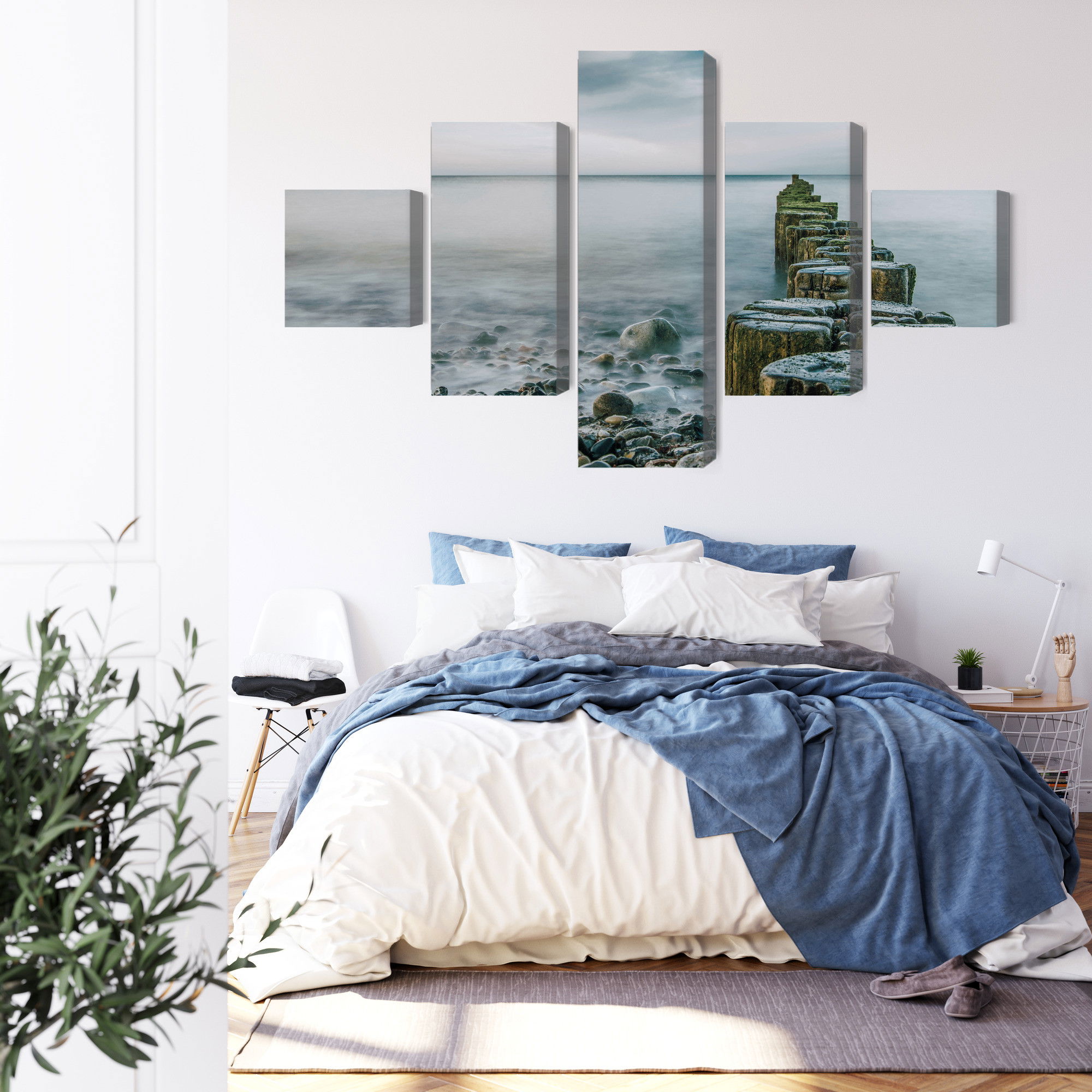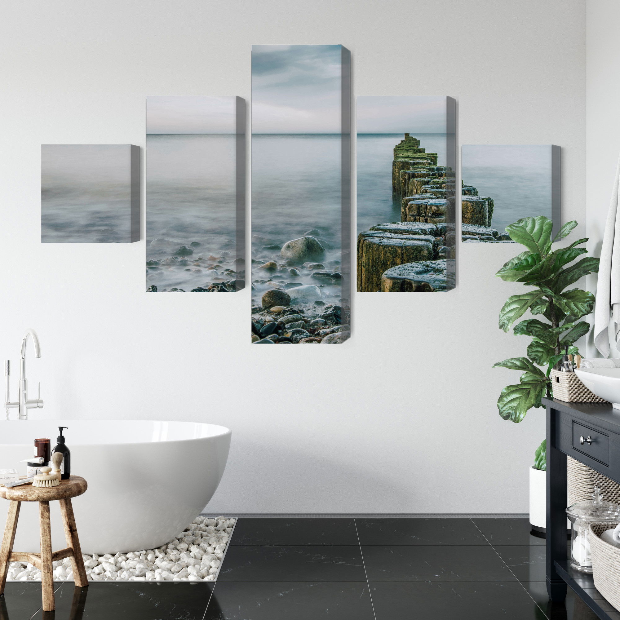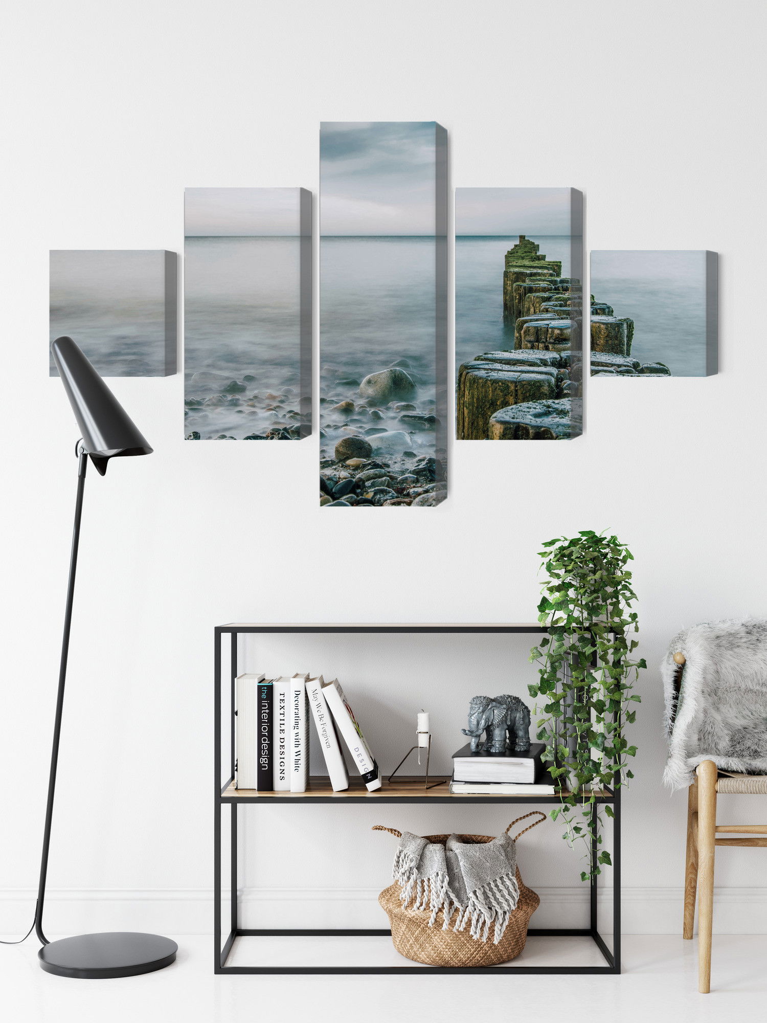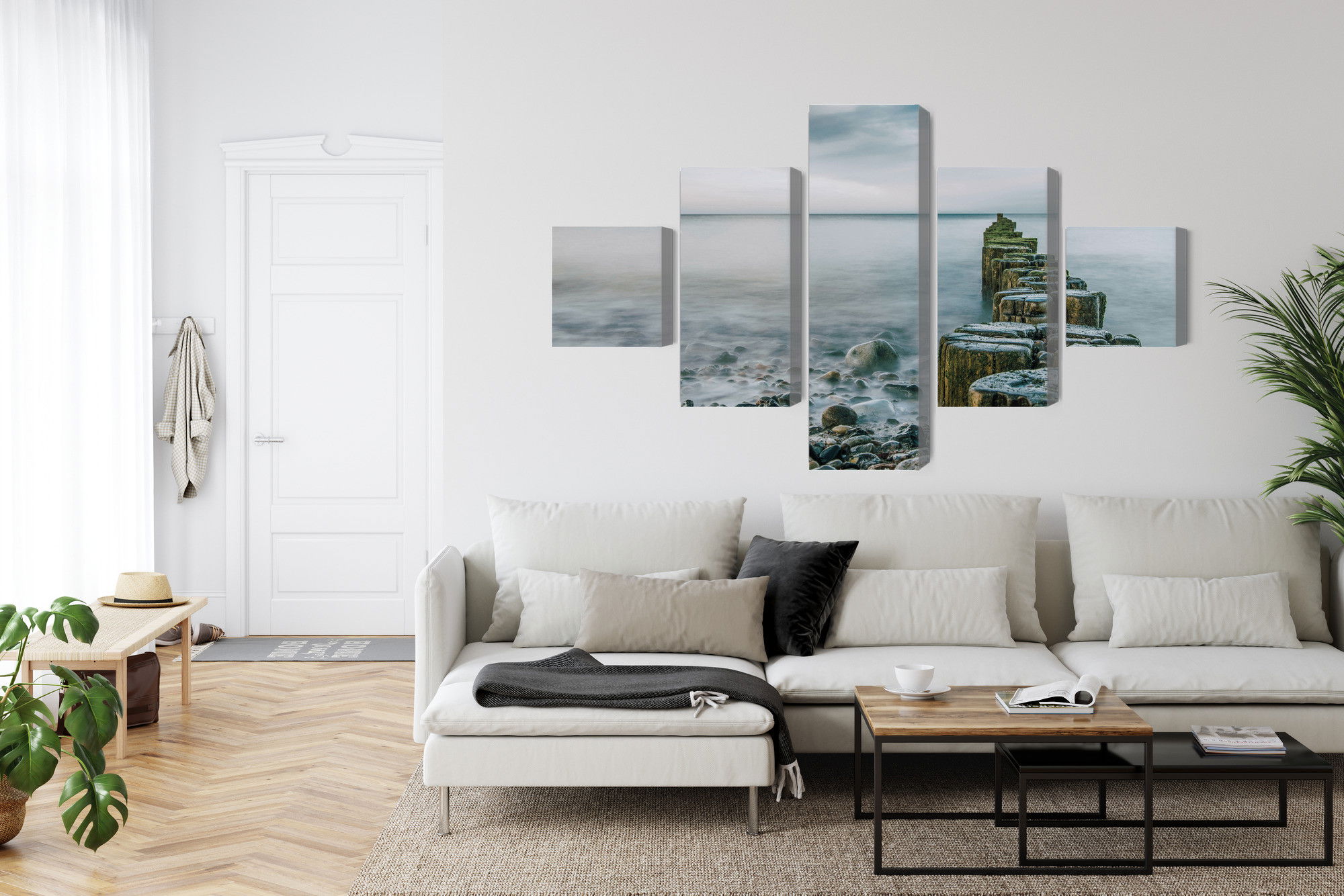 Ljuddämpande tavla – Rocky beach and 3d wooden för lugnare rum och mjukare akustik