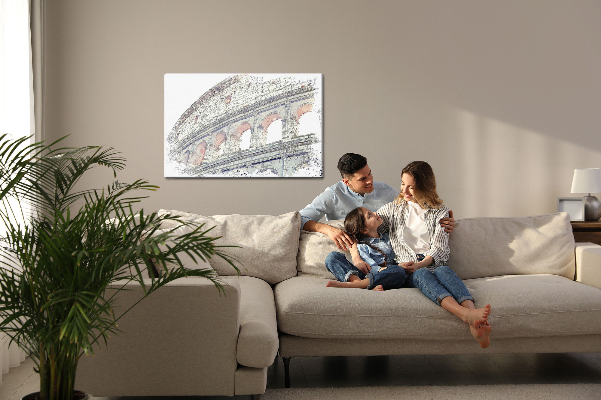 Motivet Roman Colosseum as painted återges med hög färgprecision och detaljrikedom tack vare HP Latex-teknologi. Trycket sker med vattenbaserade, luktfria och GREENGUARD Gold-certifierade bläck som ger en upplösning på upp till 300 DPI. Färgerna är UV-beständiga och behåller sin styrka även i ljusa rum, vilket gör tavlan lämplig för både hem- och offentliga miljöer.