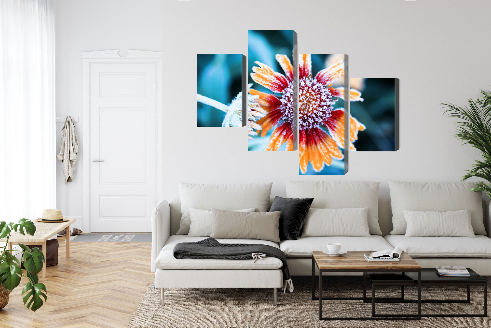 Varje tavla monteras på en massiv fururam. Format upp till 70×50 cm har en ram på 15 mm, medan format från 90×60 cm och uppåt har en ram på 20 mm. Den exakta dukspänningen gör att tavlan håller sin form över tid. Motivet Rudbeckia flowers covered trycks runt hela ramen vilket ger ett stilrent galleriuttryck där tavlan är lika vacker från sidan som framifrån. Kombinationen av rak dukspänning, rena linjer och korrekt tryck ger en professionell finish.
