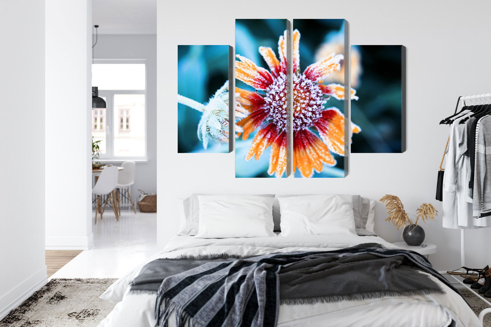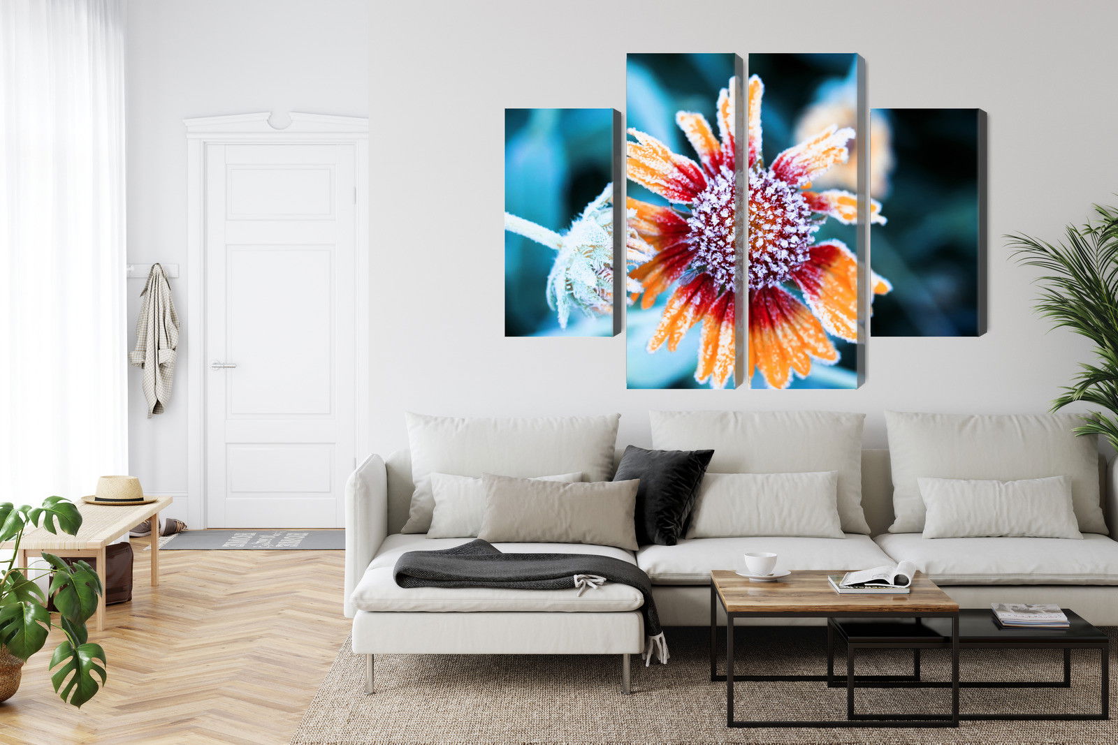 Motivet Rudbeckia flowers covered återges med hög färgprecision och detaljrikedom tack vare HP Latex-teknologi. Trycket sker med vattenbaserade, luktfria och GREENGUARD Gold-certifierade bläck som ger en upplösning på upp till 300 DPI. Färgerna är UV-beständiga och behåller sin styrka även i ljusa rum, vilket gör tavlan lämplig för både hem- och offentliga miljöer.