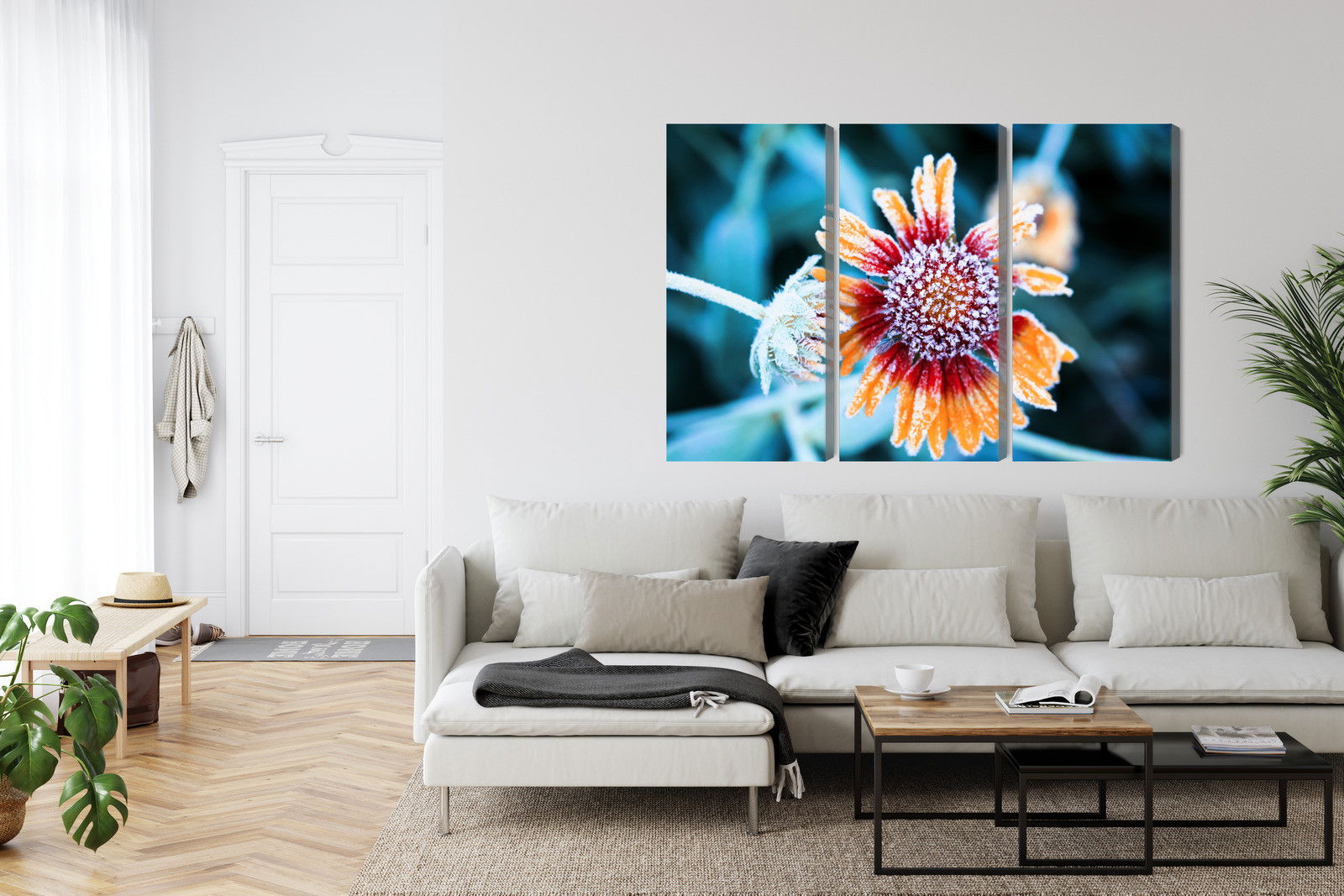 Varje tavla monteras på en massiv fururam. Format upp till 70×50 cm har en ram på 15 mm, medan format från 90×60 cm och uppåt har en ram på 20 mm. Den exakta dukspänningen gör att tavlan håller sin form över tid. Motivet Rudbeckia flowers covered trycks runt hela ramen vilket ger ett stilrent galleriuttryck där tavlan är lika vacker från sidan som framifrån. Kombinationen av rak dukspänning, rena linjer och korrekt tryck ger en professionell finish.