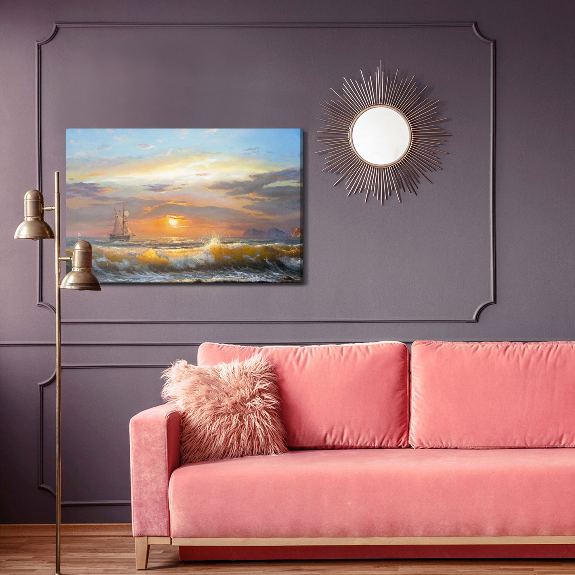 Placera tavlan där du upplever mycket eko eller hög ljudnivå, till exempel i öppna planlösningar, hemmakontor eller sociala ytor. Motiv i denna kategori gör sig särskilt bra i rum där du vill skapa en genomtänkt och sammanhängande känsla. Motiv med hav, vatten och horisonter ger rummet en lugn, djup känsla där mjuka färgskiftningar och ljusreflektioner förstärker atmosfären.