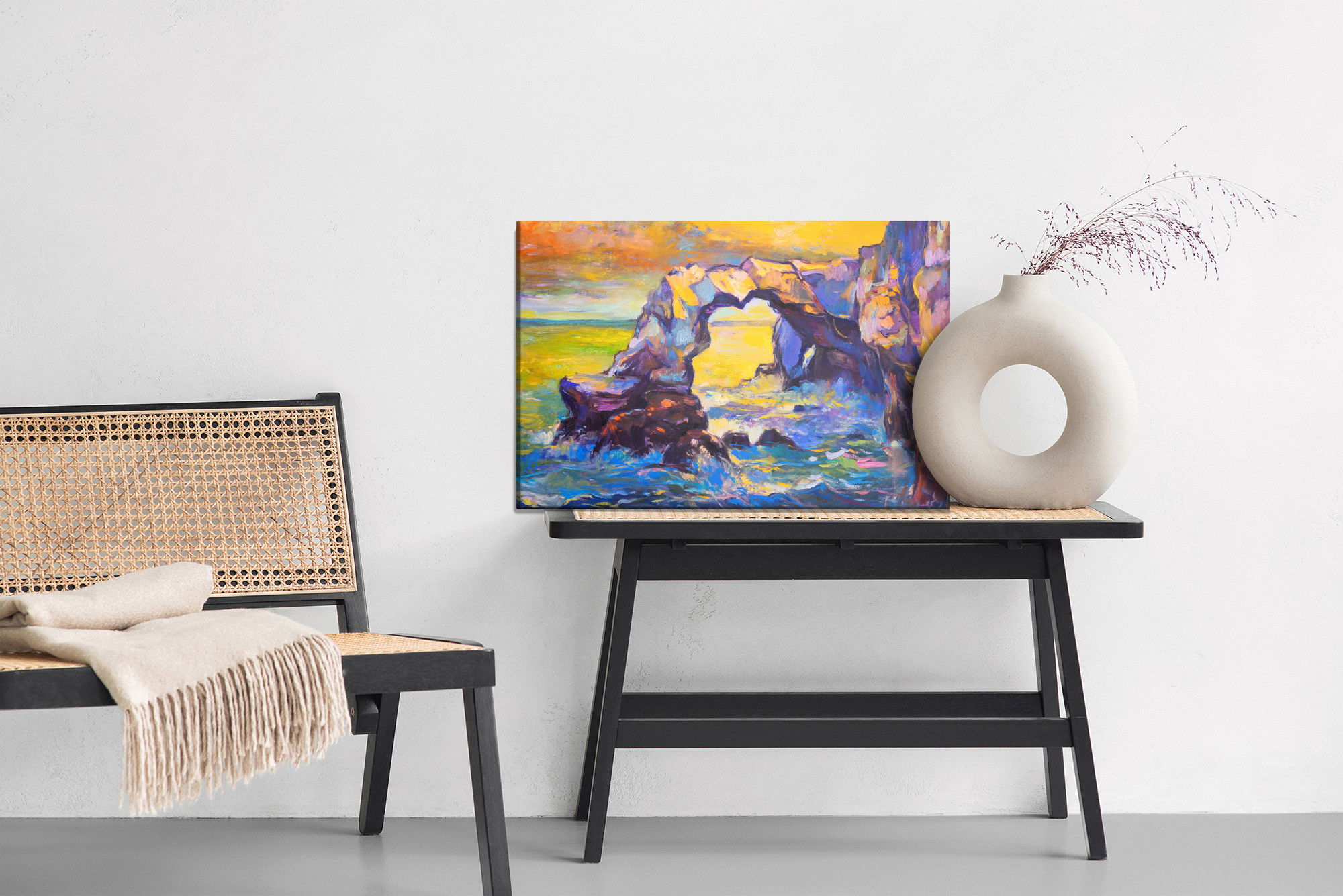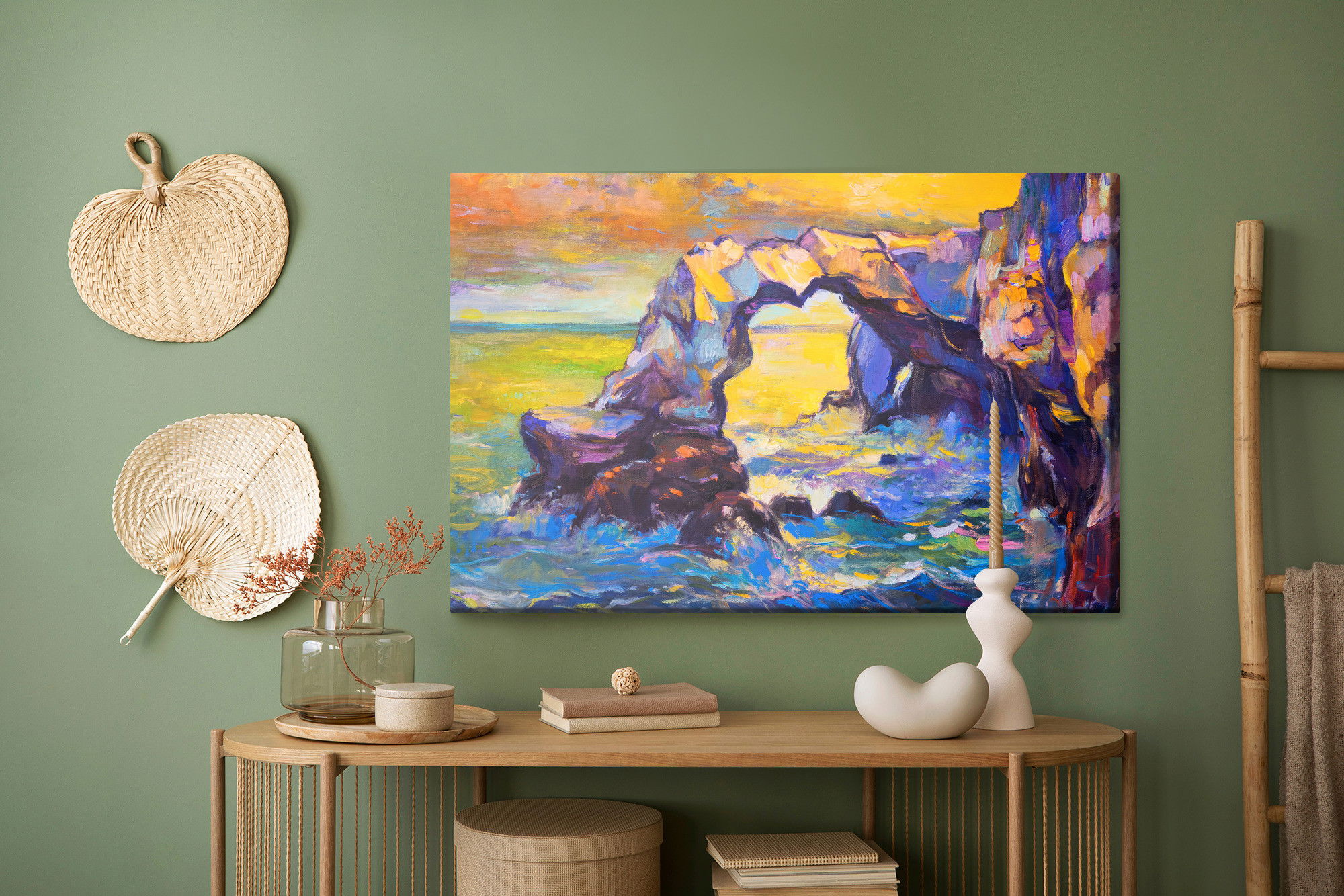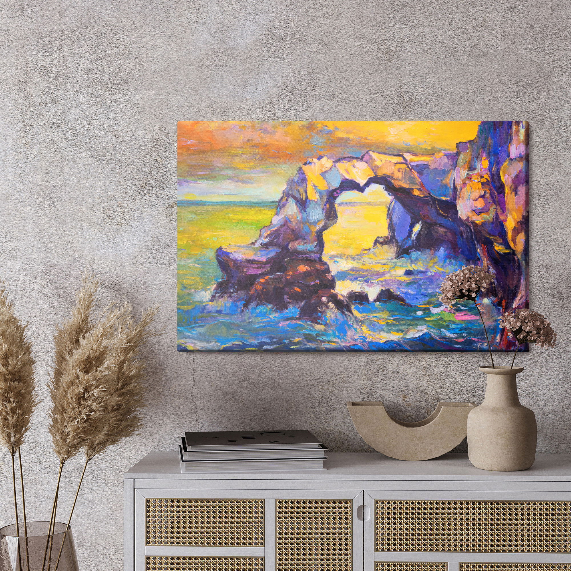 Placera tavlan där du upplever mycket eko eller hög ljudnivå, till exempel i öppna planlösningar, hemmakontor eller sociala ytor. Motiv i denna kategori gör sig särskilt bra i rum där du vill skapa en genomtänkt och sammanhängande känsla. Motiv med hav, vatten och horisonter ger rummet en lugn, djup känsla där mjuka färgskiftningar och ljusreflektioner förstärker atmosfären.