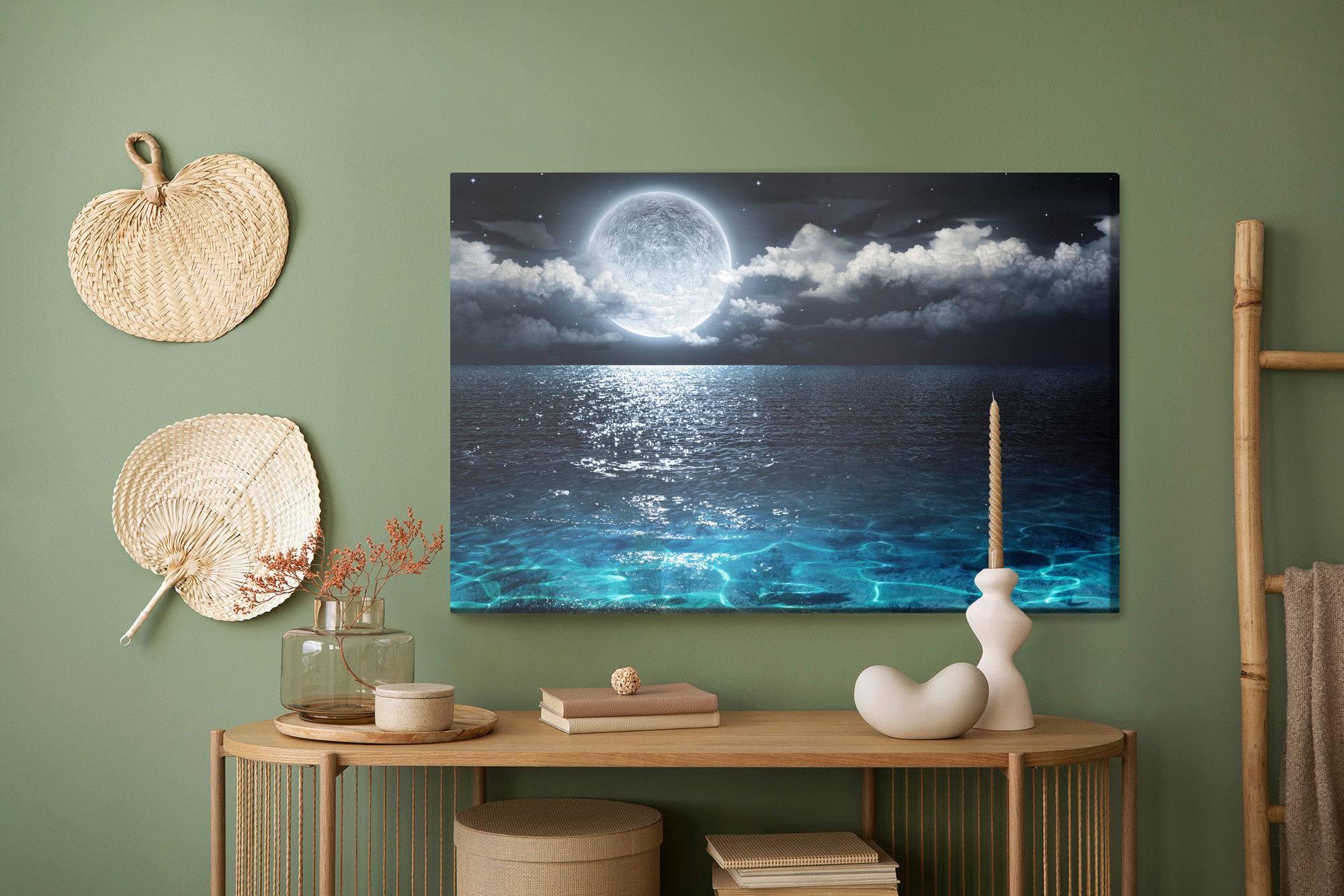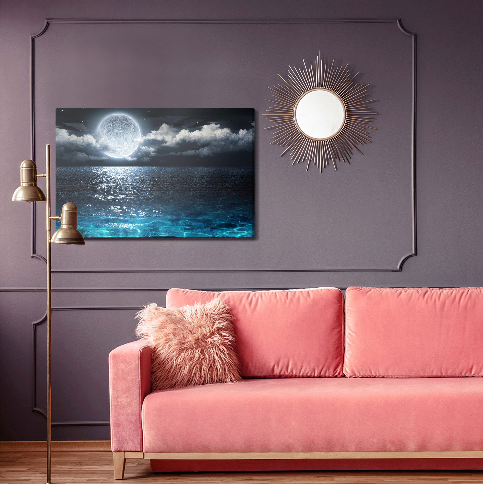 Ljuddämpande tavla – Sea at night with the moon för lugnare rum och mjukare akustik