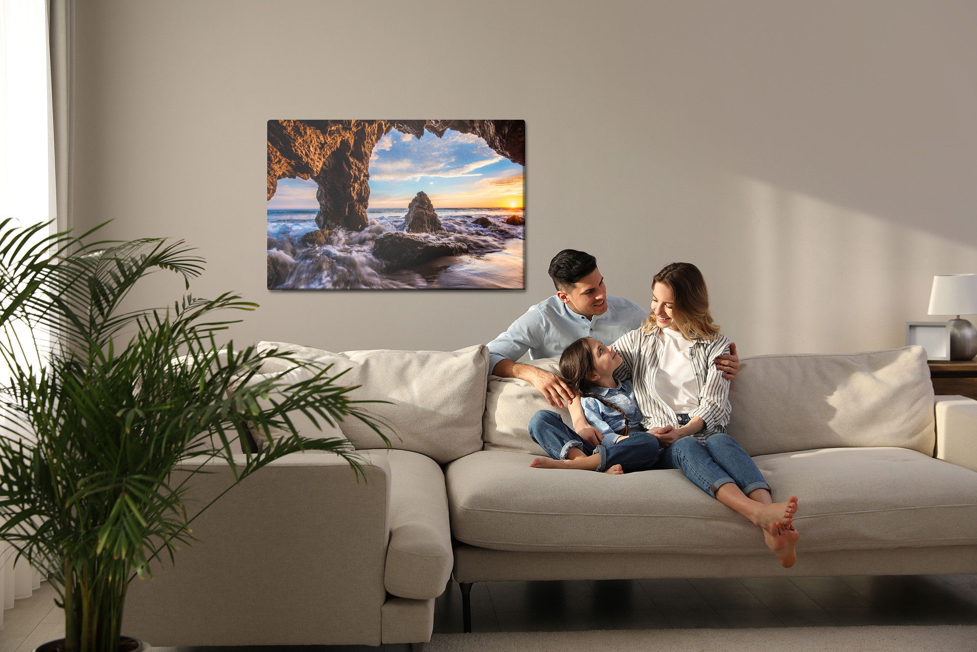 Motivet Sea cave återges med hög färgprecision och detaljrikedom tack vare HP Latex-teknologi. Trycket sker med vattenbaserade, luktfria och GREENGUARD Gold-certifierade bläck som ger en upplösning på upp till 300 DPI. Färgerna är UV-beständiga och behåller sin styrka även i ljusa rum, vilket gör tavlan lämplig för både hem- och offentliga miljöer.