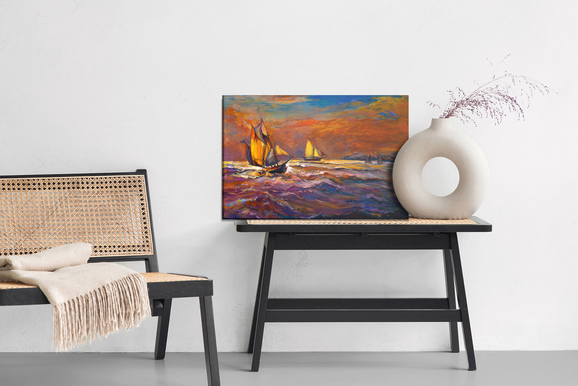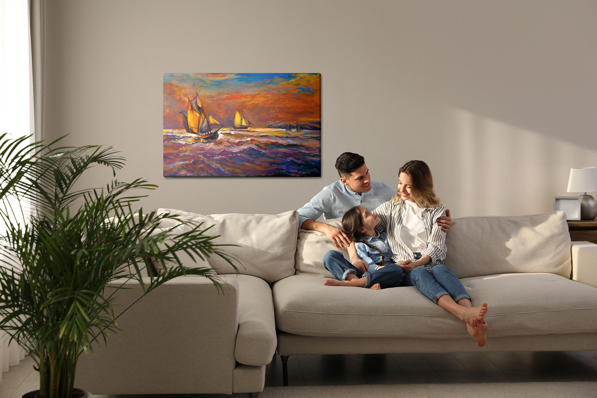 Placera tavlan där du upplever mycket eko eller hög ljudnivå, till exempel i öppna planlösningar, hemmakontor eller sociala ytor. Motiv i denna kategori gör sig särskilt bra i rum där du vill skapa en genomtänkt och sammanhängande känsla. Motiv med hav, vatten och horisonter ger rummet en lugn, djup känsla där mjuka färgskiftningar och ljusreflektioner förstärker atmosfären.