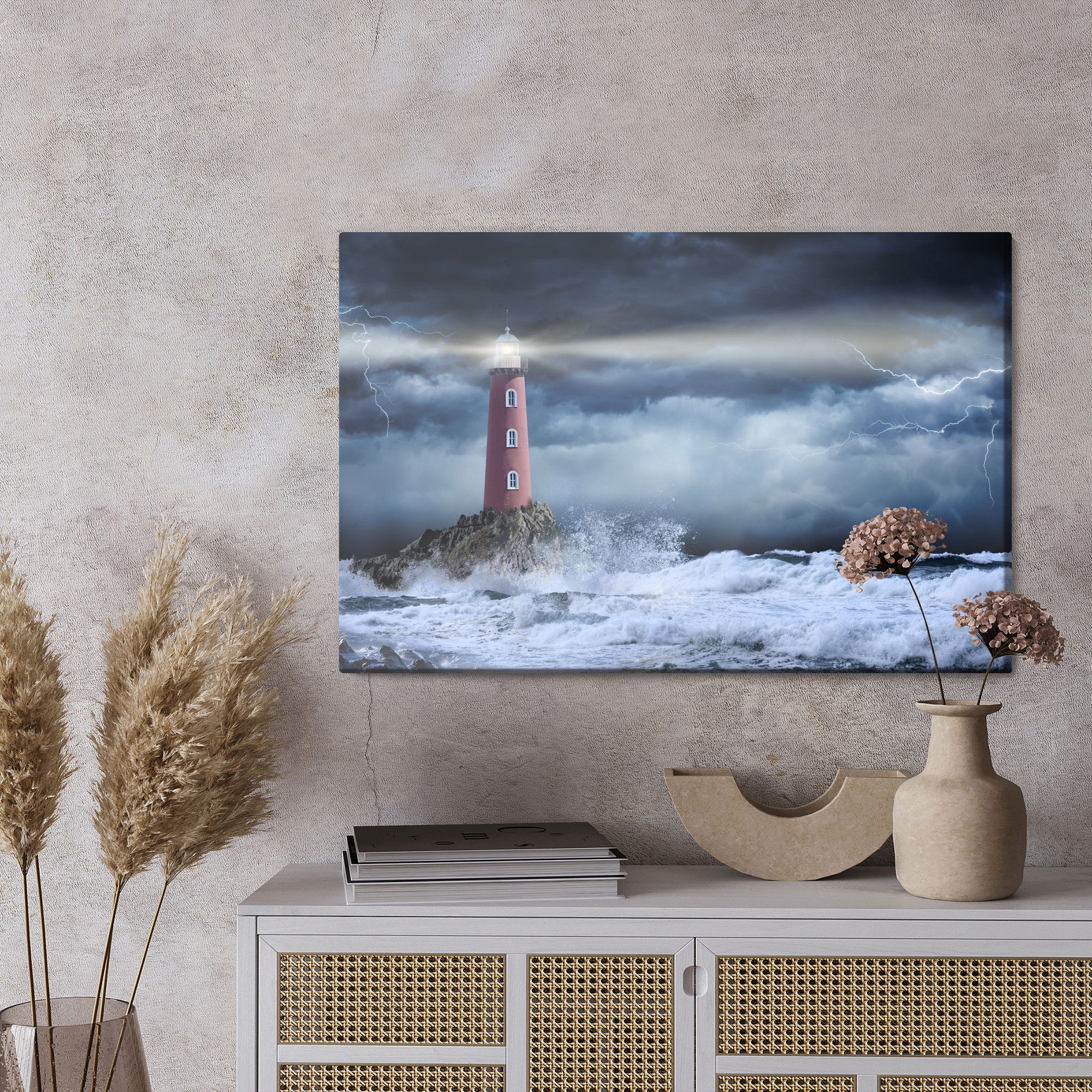 Ljuddämpande tavla – Sea storm and lighthouse för lugnare rum och mjukare akustik