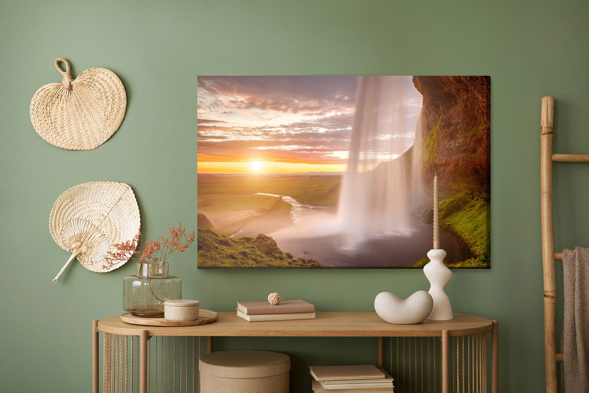 Ljuddämpande tavla – Seljalandsfoss waterfall för lugnare rum och mjukare akustik