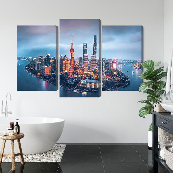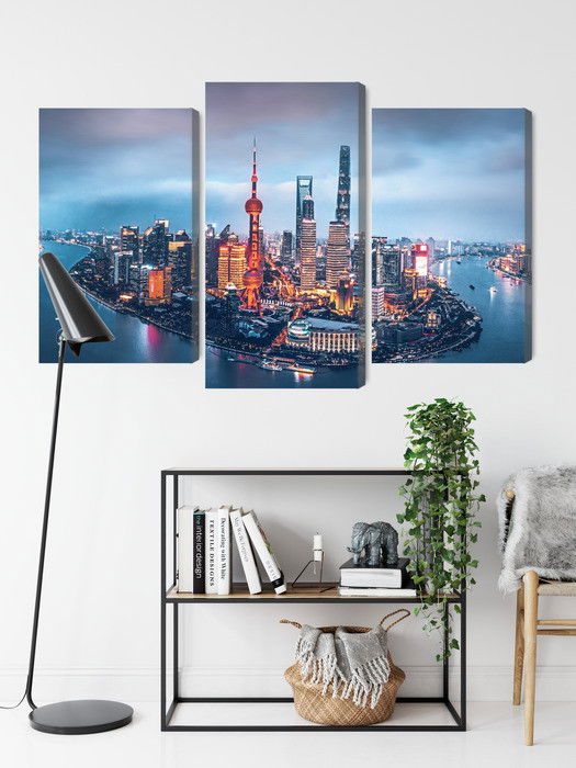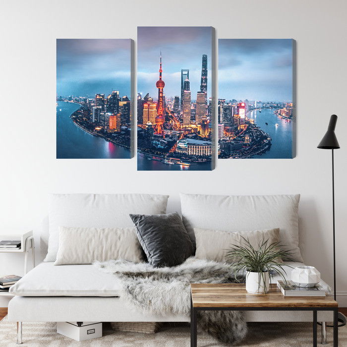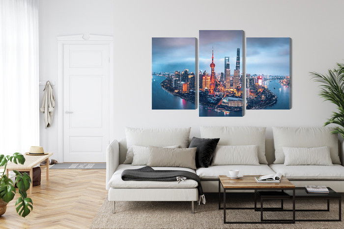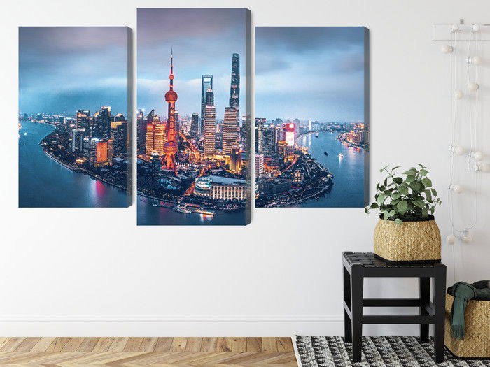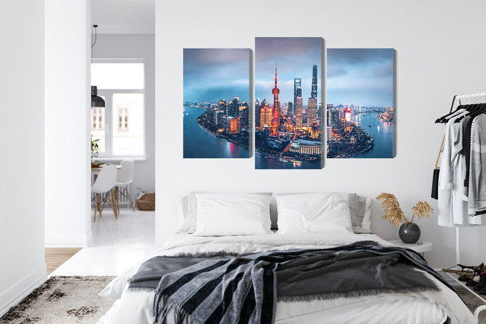 Ljuddämpande tavla – Shanghai panorama at night för lugnare rum och mjukare akustik