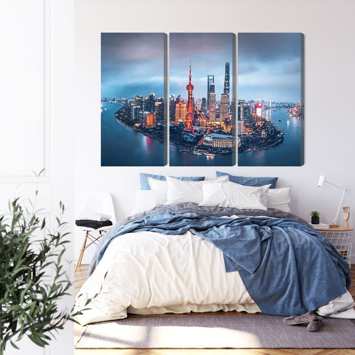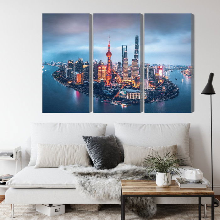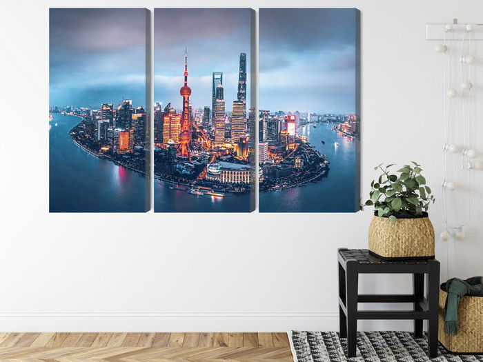 Ljuddämpande tavla – Shanghai panorama at night för lugnare rum och mjukare akustik