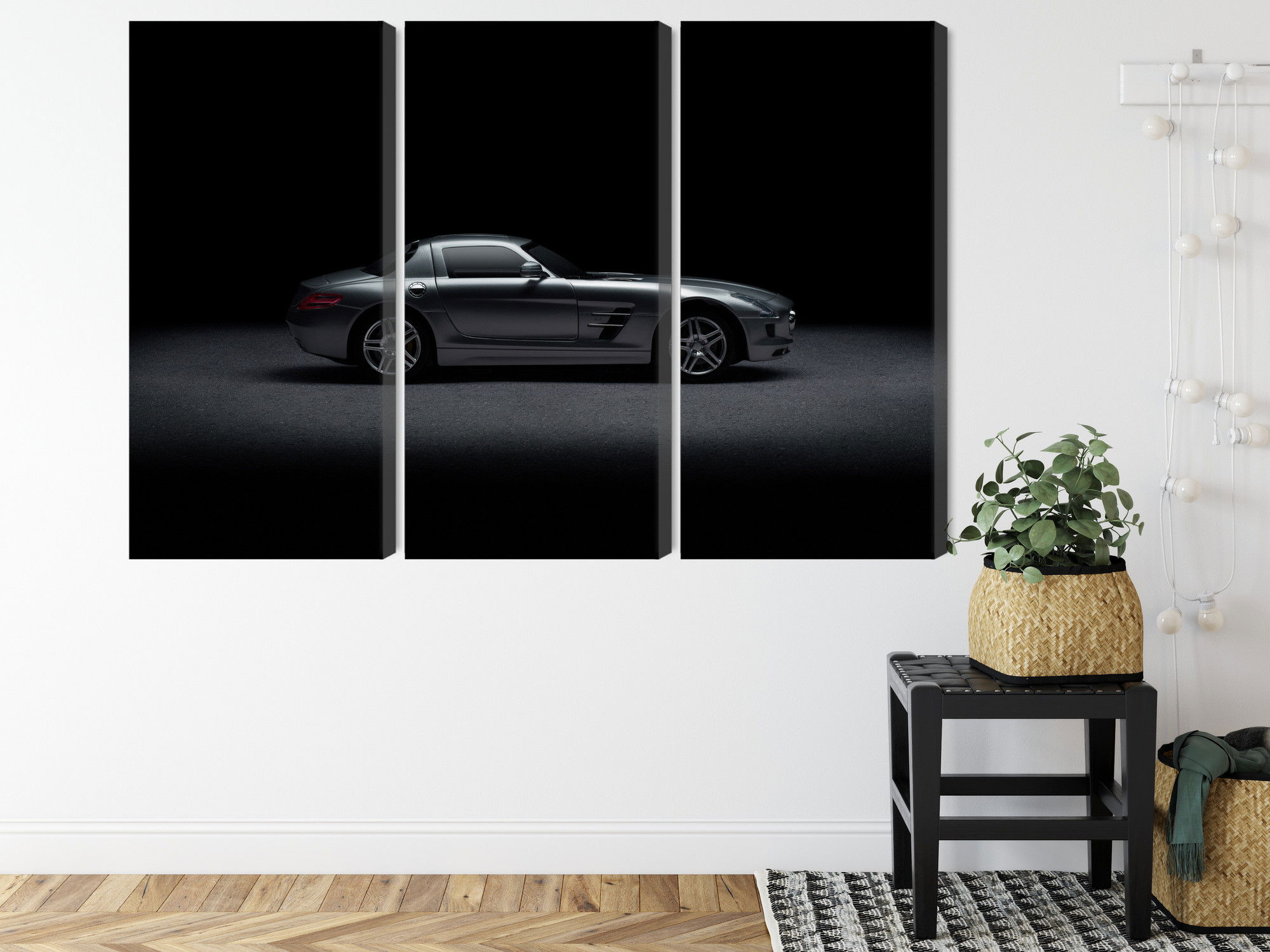 Med SilentDirects ljuddämpande tavla Sports car on a dark integreras akustiklösning och väggdekoration i en och samma produkt. Ramen i massiv furu fylls med återvunnen polyester som hjälper till att absorbera störande ljudreflektioner.