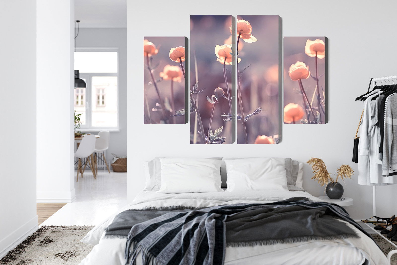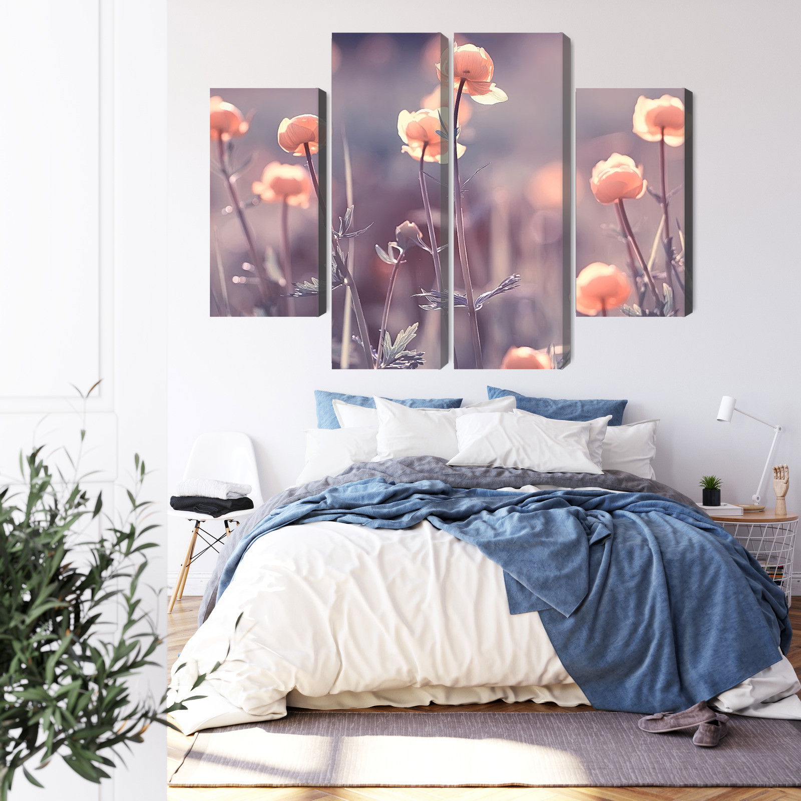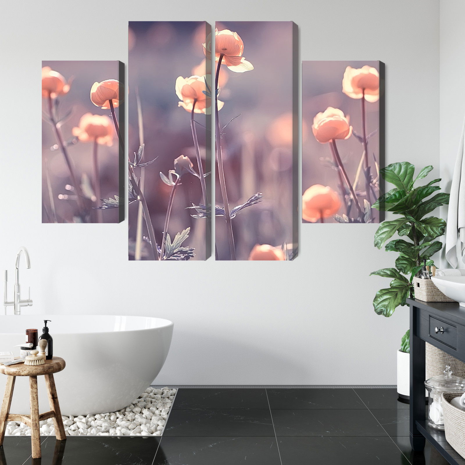 Placera tavlan där du upplever mycket eko eller hög ljudnivå, till exempel i öppna planlösningar, hemmakontor eller sociala ytor. Motiv i denna kategori gör sig särskilt bra i rum där du vill skapa en genomtänkt och sammanhängande känsla. Blommotiv bidrar med subtil detaljrikedom och naturliga färgövergångar som gör rummet välkomnande och levande utan att ta över helheten.
