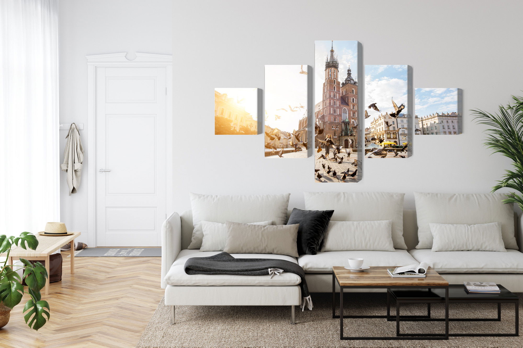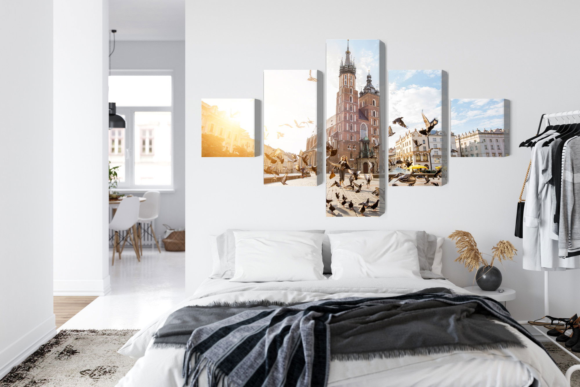 Varje tavla monteras på en massiv fururam. Format upp till 70×50 cm har en ram på 15 mm, medan format från 90×60 cm och uppåt har en ram på 20 mm. Den exakta dukspänningen gör att tavlan håller sin form över tid. Motivet St. mary's basilica trycks runt hela ramen vilket ger ett stilrent galleriuttryck där tavlan är lika vacker från sidan som framifrån. Kombinationen av rak dukspänning, rena linjer och korrekt tryck ger en professionell finish.