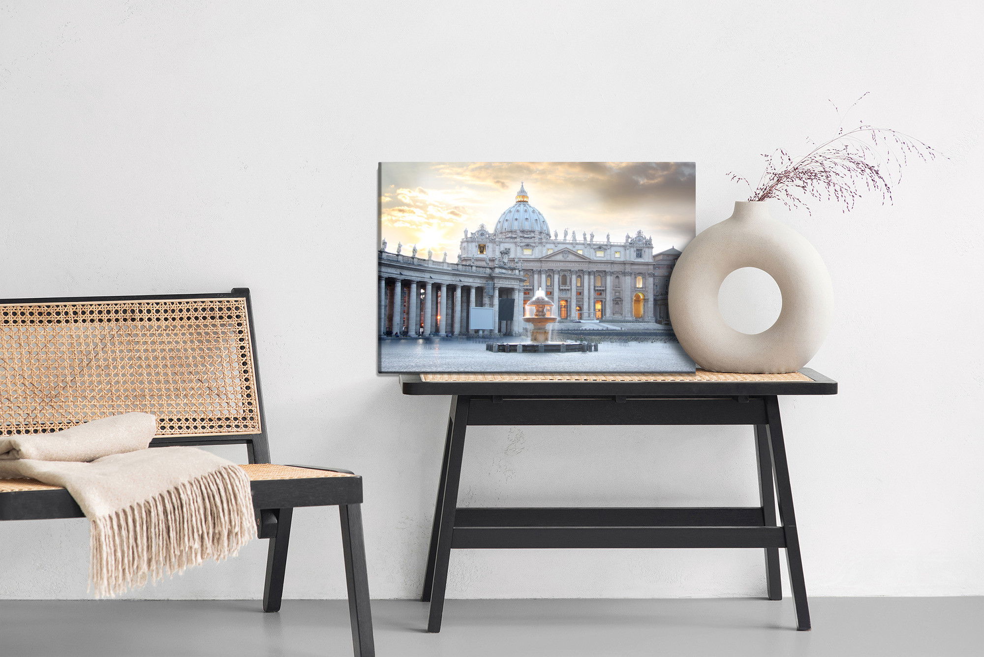 Motivet St. peter's basilica in the återges med hög färgprecision och detaljrikedom tack vare HP Latex-teknologi. Trycket sker med vattenbaserade, luktfria och GREENGUARD Gold-certifierade bläck som ger en upplösning på upp till 300 DPI. Färgerna är UV-beständiga och behåller sin styrka även i ljusa rum, vilket gör tavlan lämplig för både hem- och offentliga miljöer.
