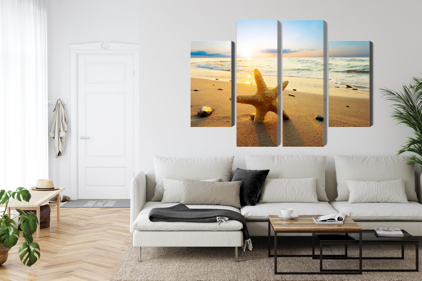 Ljuddämpande tavla – Starfish on the beach 3d för lugnare rum och mjukare akustik
