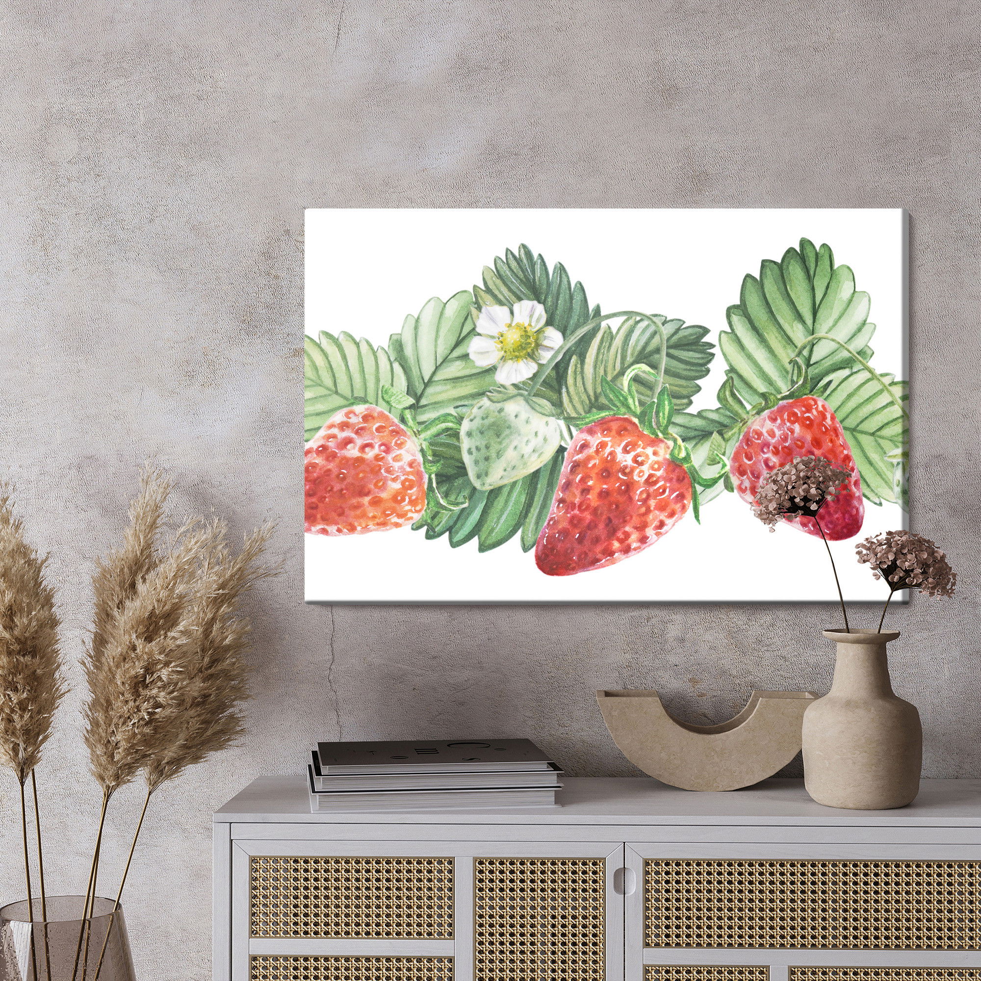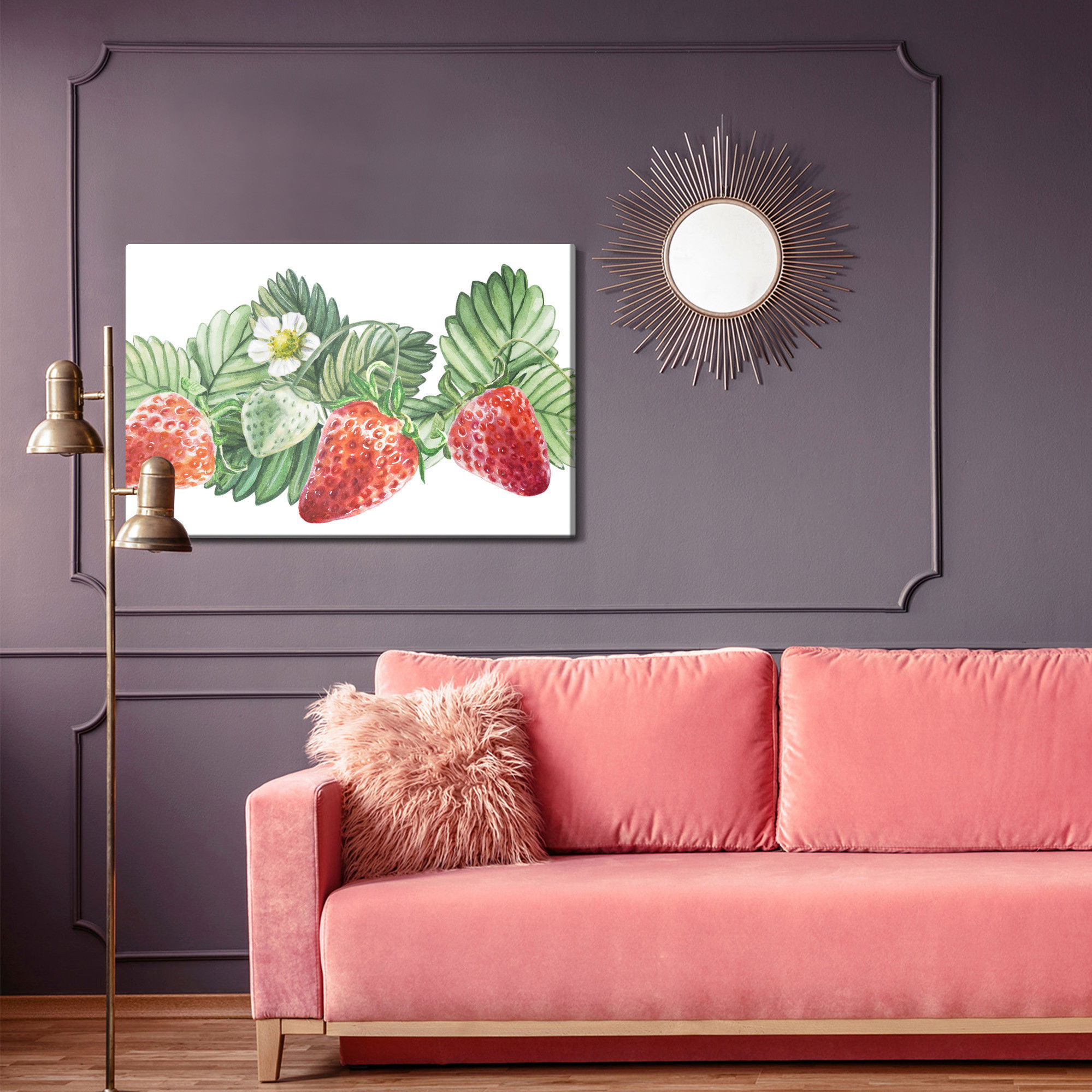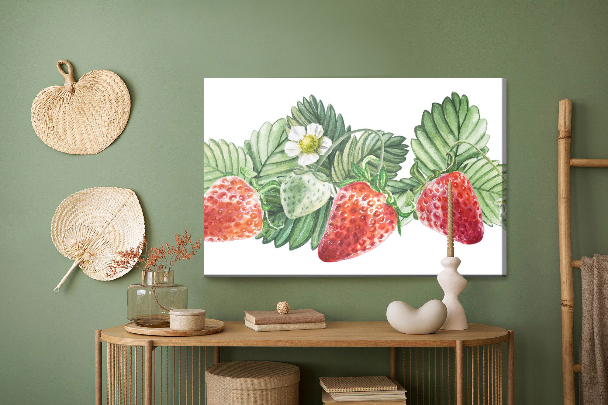Ljuddämpande tavla – Strawberries with flowers för lugnare rum och mjukare akustik