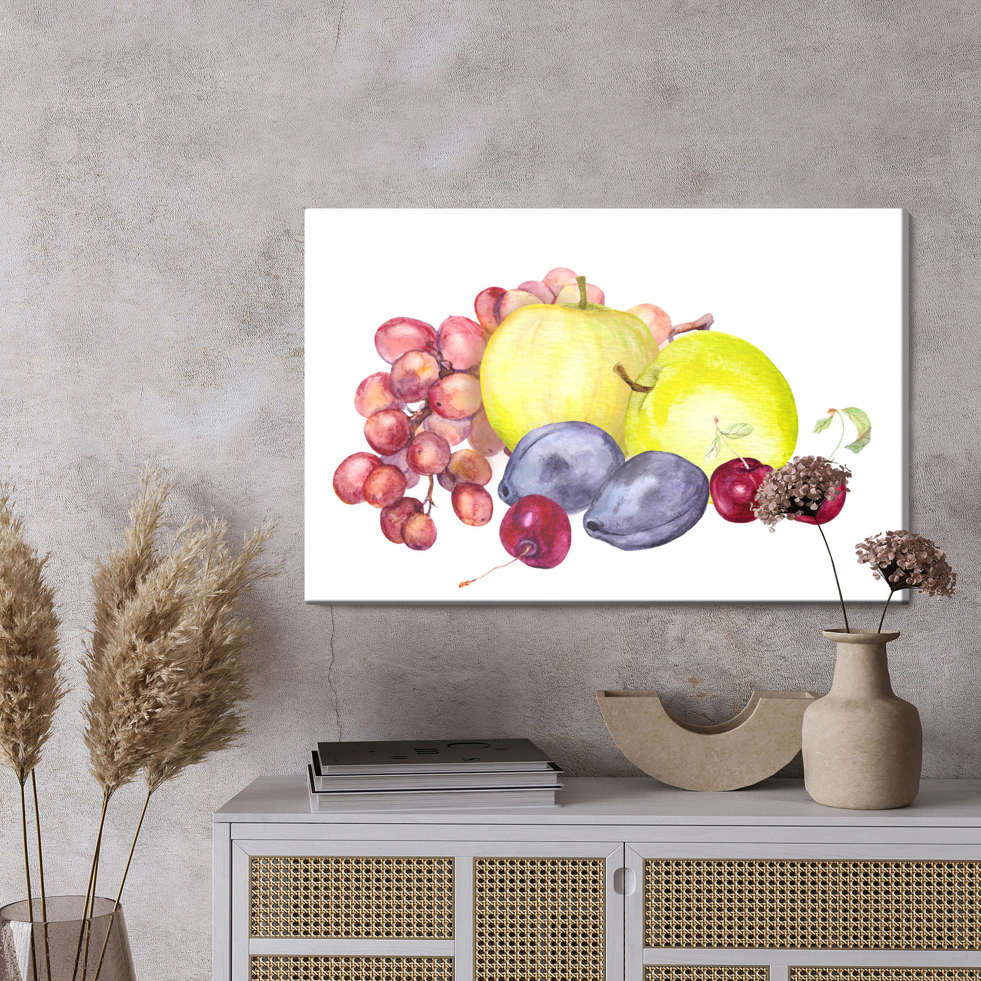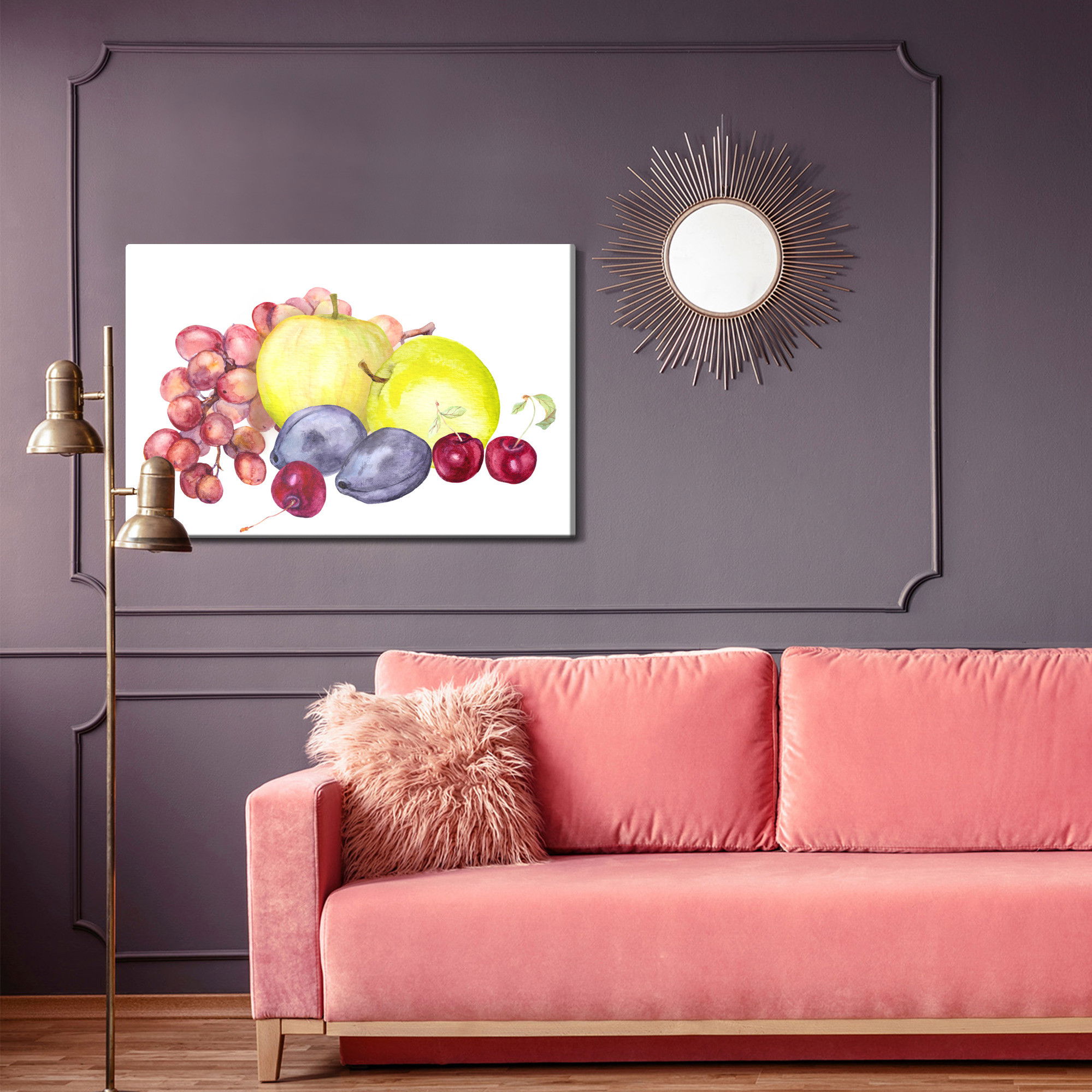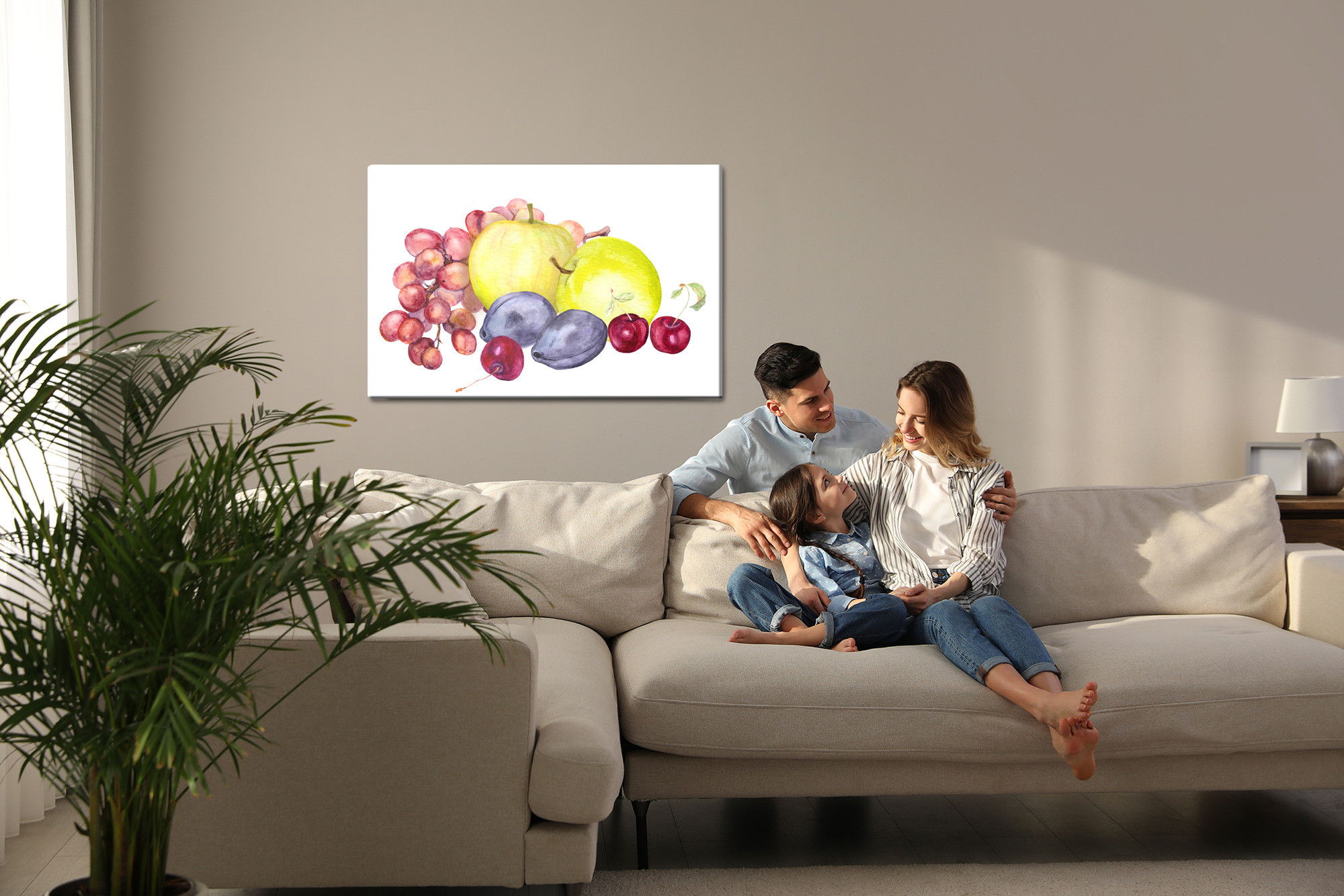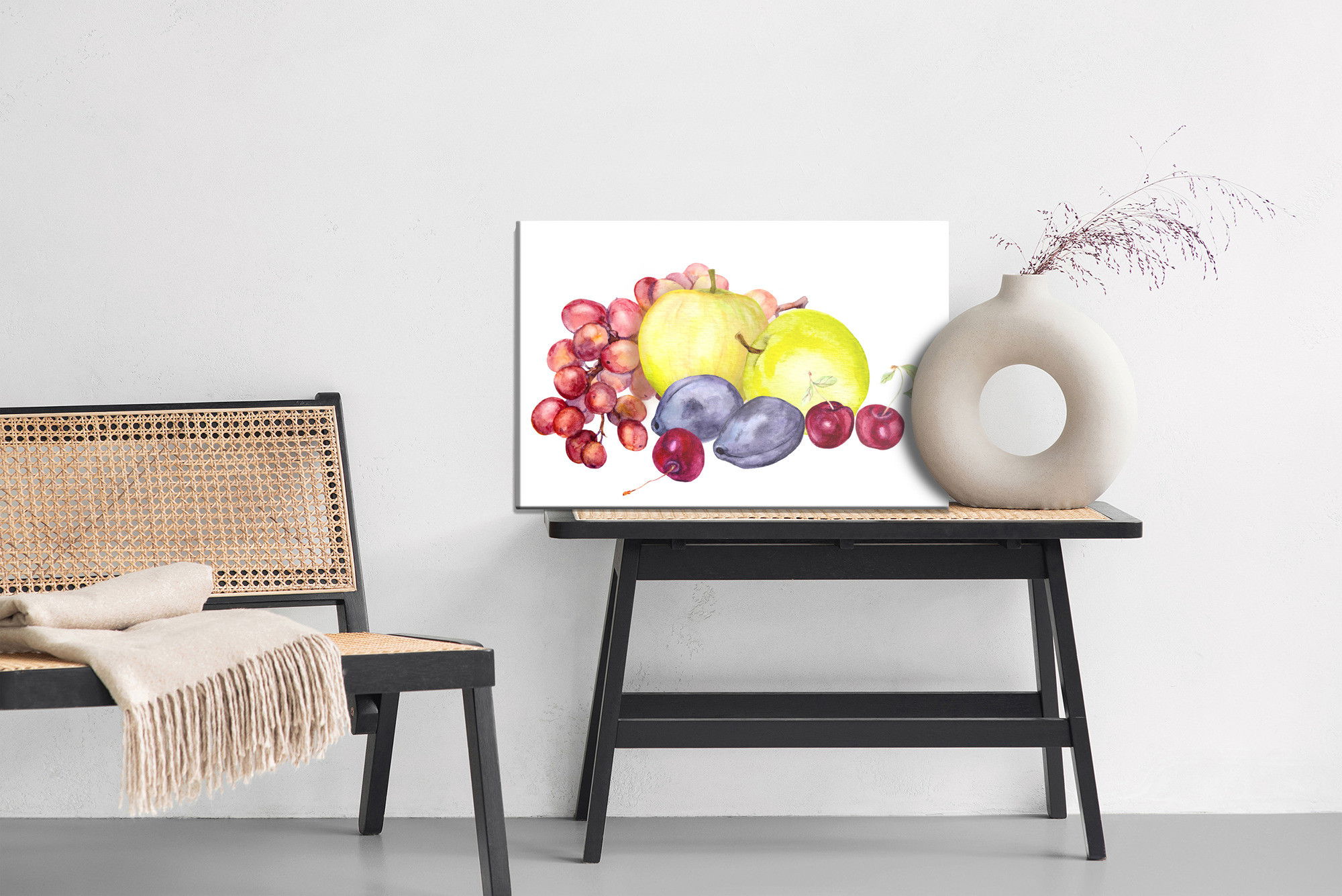Motivet Summer fruit painted återges med hög färgprecision och detaljrikedom tack vare HP Latex-teknologi. Trycket sker med vattenbaserade, luktfria och GREENGUARD Gold-certifierade bläck som ger en upplösning på upp till 300 DPI. Färgerna är UV-beständiga och behåller sin styrka även i ljusa rum, vilket gör tavlan lämplig för både hem- och offentliga miljöer.