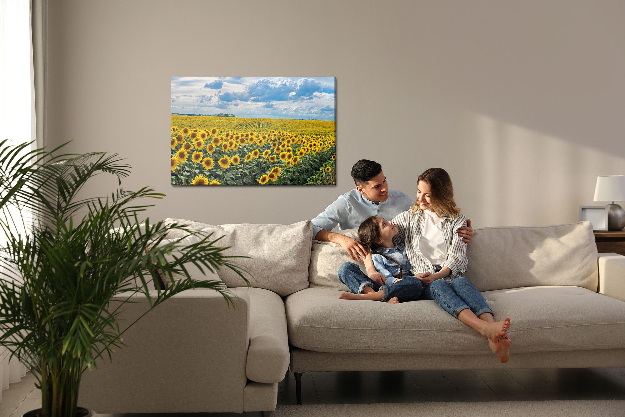 Varje tavla monteras på en massiv fururam. Format upp till 70×50 cm har en ram på 15 mm, medan format från 90×60 cm och uppåt har en ram på 20 mm. Den exakta dukspänningen gör att tavlan håller sin form över tid. Motivet trycks runt hela ramen vilket ger ett stilrent galleriuttryck där tavlan är lika vacker från sidan som framifrån. Kombinationen av rak dukspänning, rena linjer och korrekt tryck ger en professionell finish.