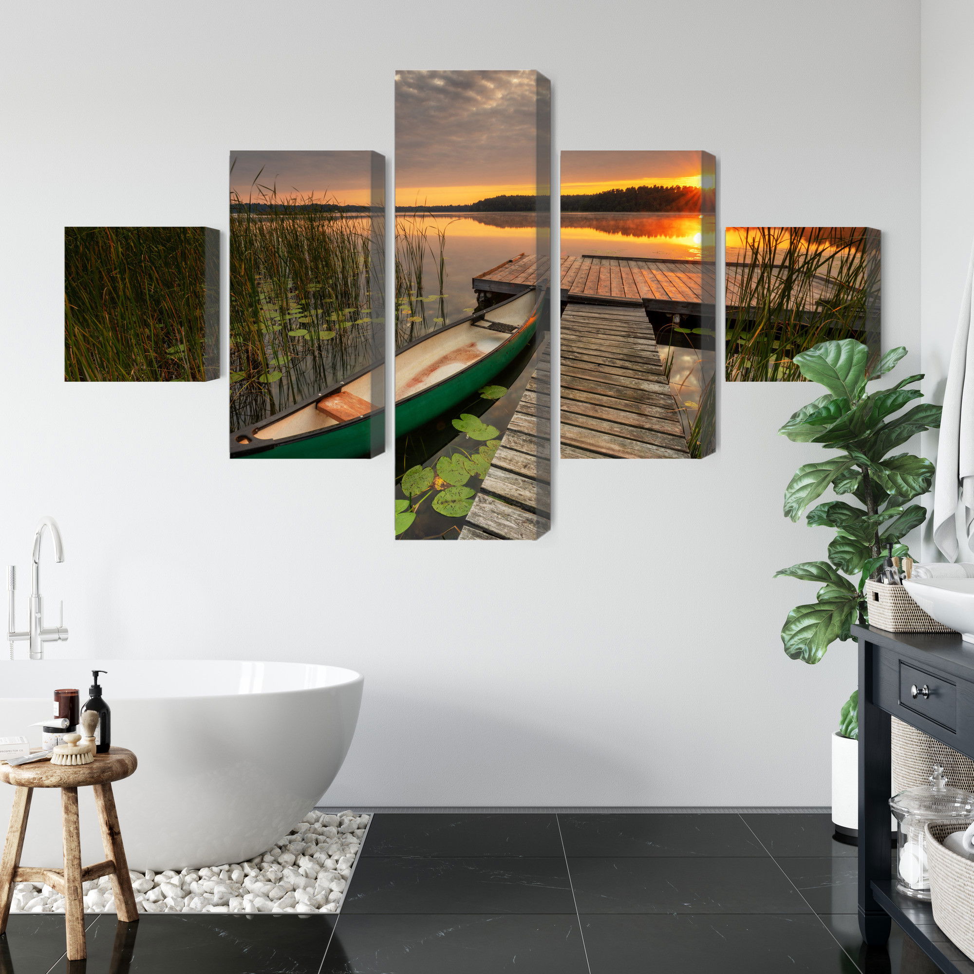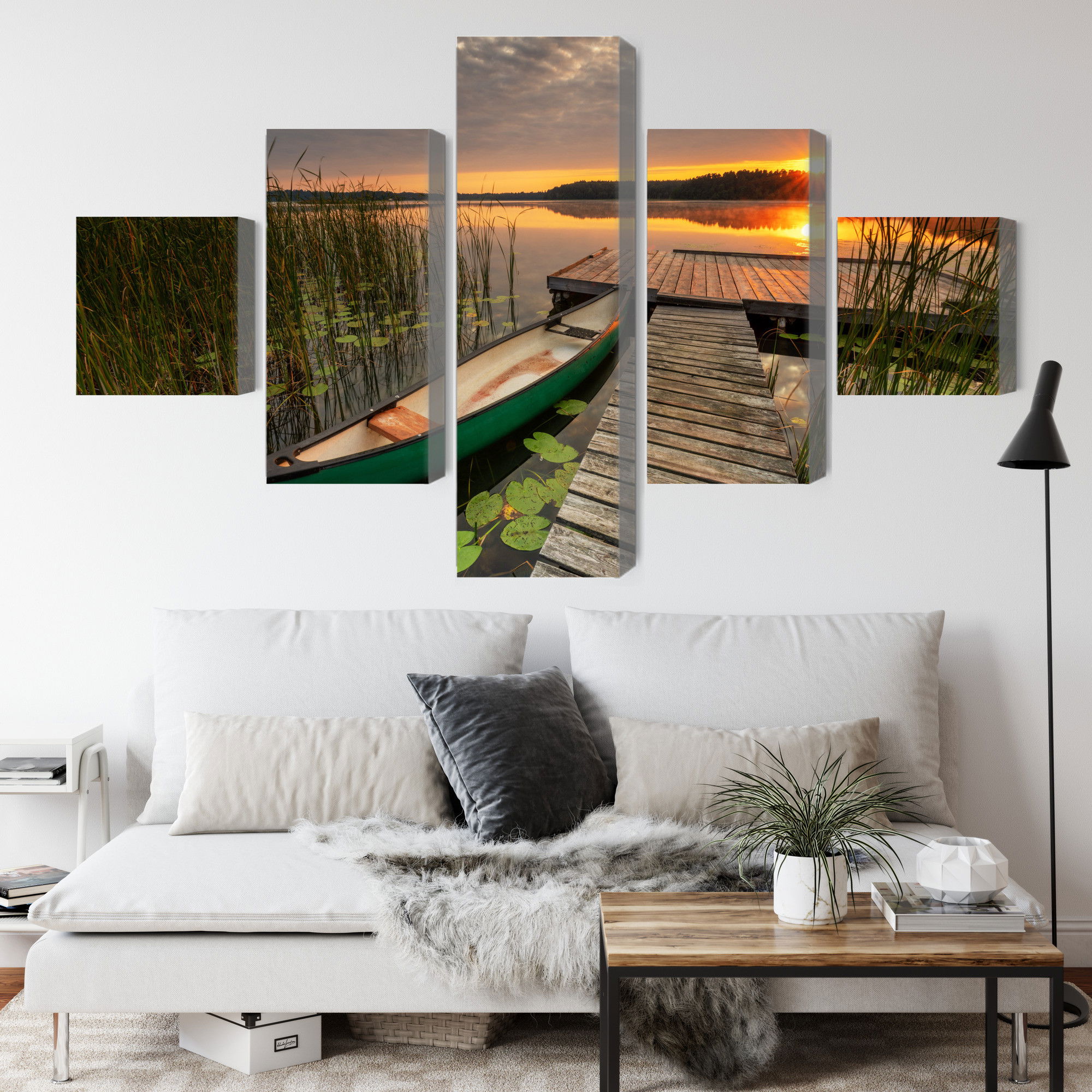 Varje tavla monteras på en massiv fururam. Format upp till 70×50 cm har en ram på 15 mm, medan format från 90×60 cm och uppåt har en ram på 20 mm. Den exakta dukspänningen gör att tavlan håller sin form över tid. Motivet Summer sunrise trycks runt hela ramen vilket ger ett stilrent galleriuttryck där tavlan är lika vacker från sidan som framifrån. Kombinationen av rak dukspänning, rena linjer och korrekt tryck ger en professionell finish.