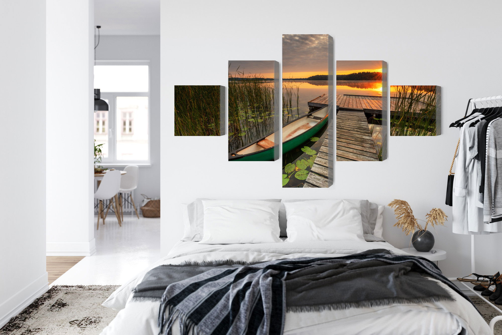 Den ljuddämpande tavlan skapar ett mer behagligt ljudlandskap genom att jämna ut efterklang och dämpa störande reflektioner från hårda ytor. Den balanserade absorptionen gör att ljudet upplevs mjukare och att rummets akustik förbättras i såväl vardagsrum och kontor som i sovrum och offentliga miljöer. Samtidigt förstärker den högkvalitativa trycktekniken motivets ljus, färger och detaljer, vilket ger en harmonisk känsla i rummet.