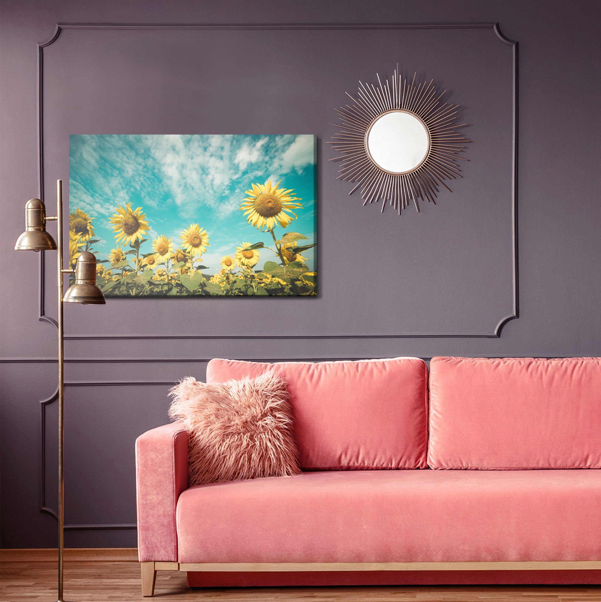 Ljuddämpande tavla – Sunflower field against för lugnare rum och mjukare akustik