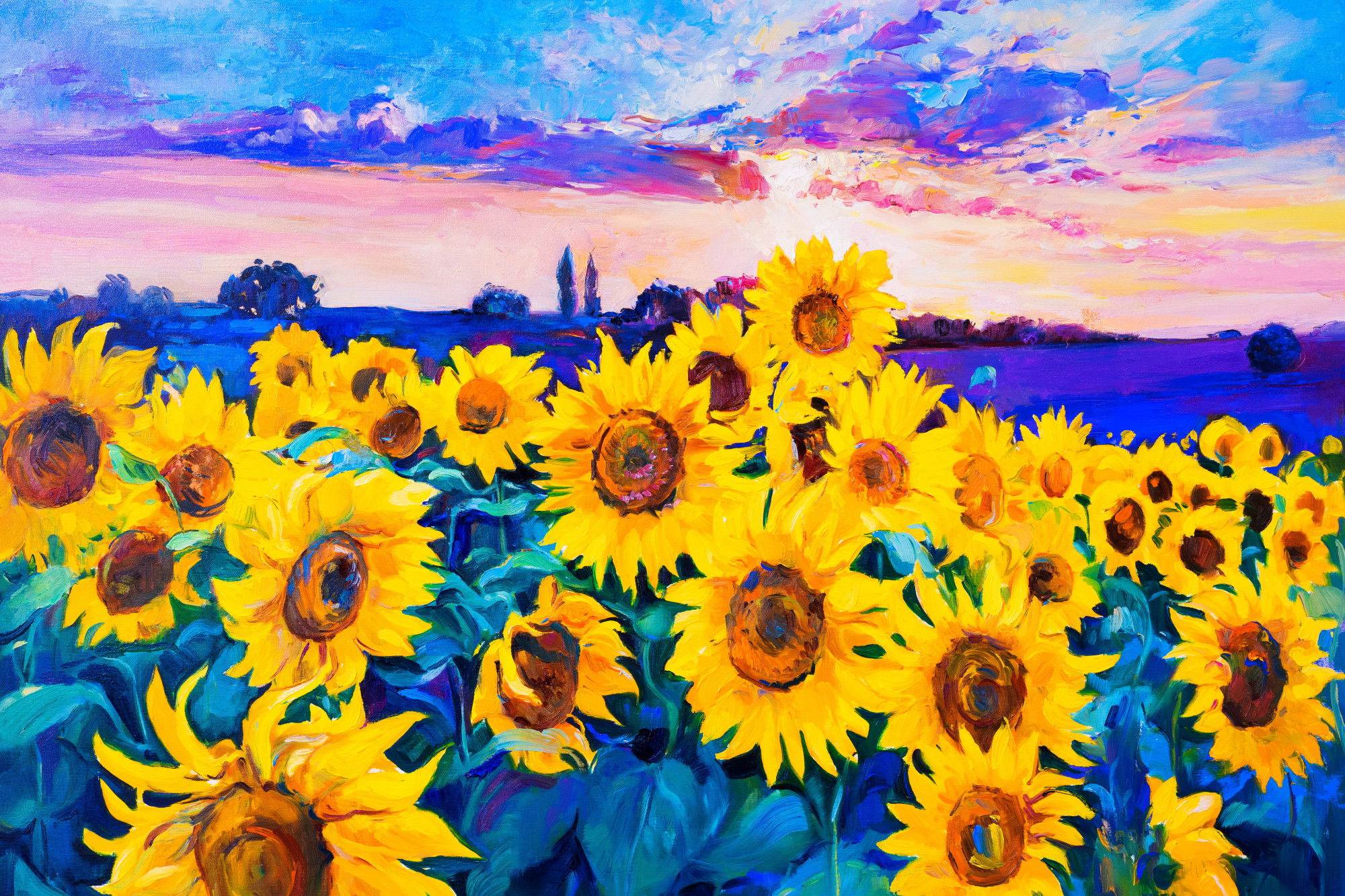 Ljuddämpande tavla - Sunflower field as painted