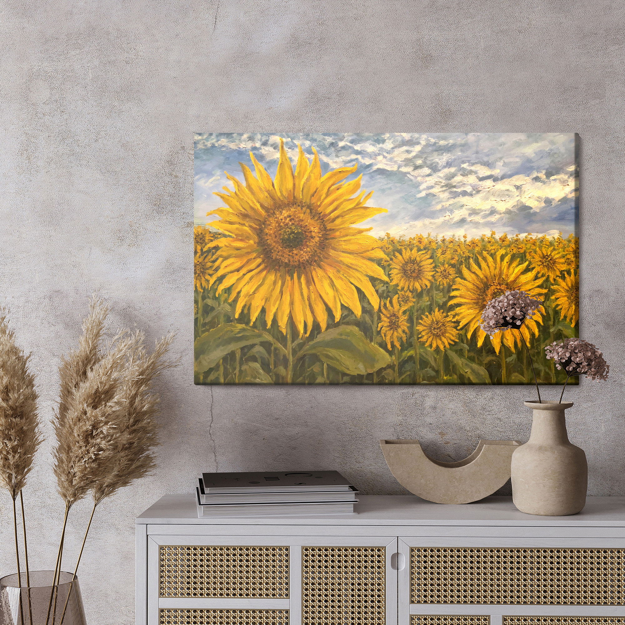 Ljuddämpande tavla – Sunflower field as painted 3d för lugnare rum och mjukare akustik