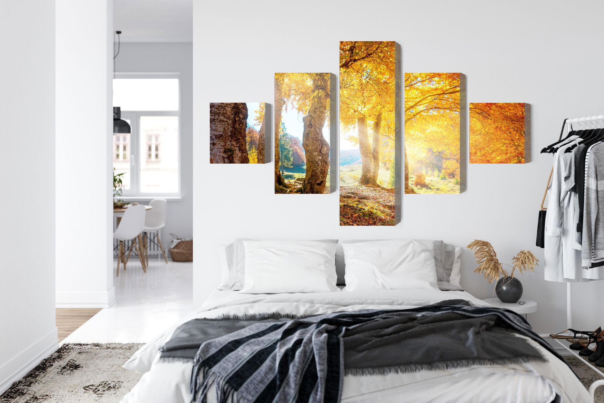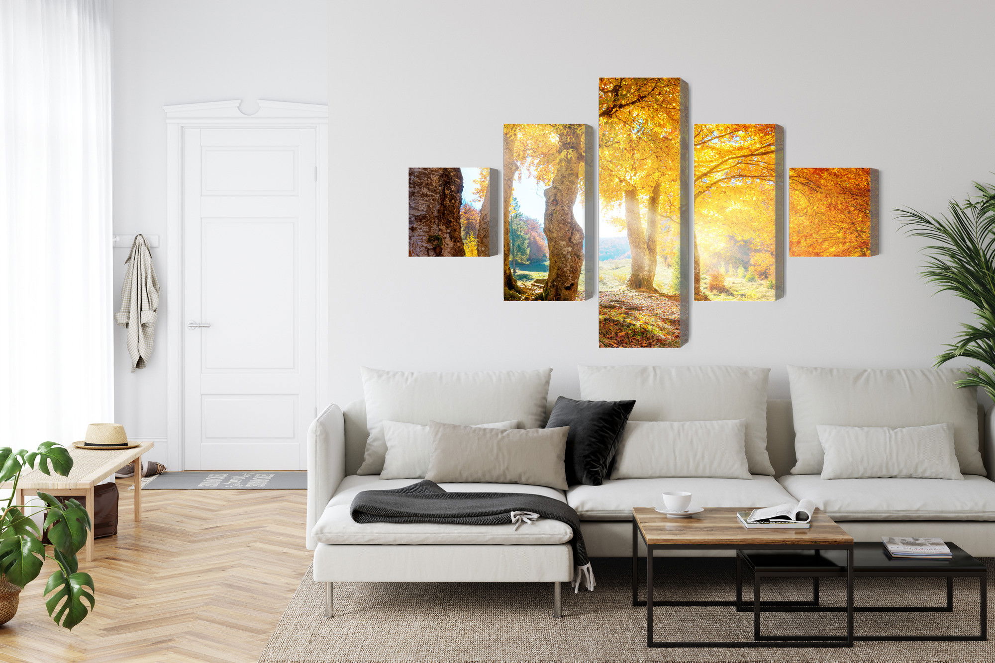 Ljuddämpande tavla – Sunny autumn forest för lugnare rum och mjukare akustik