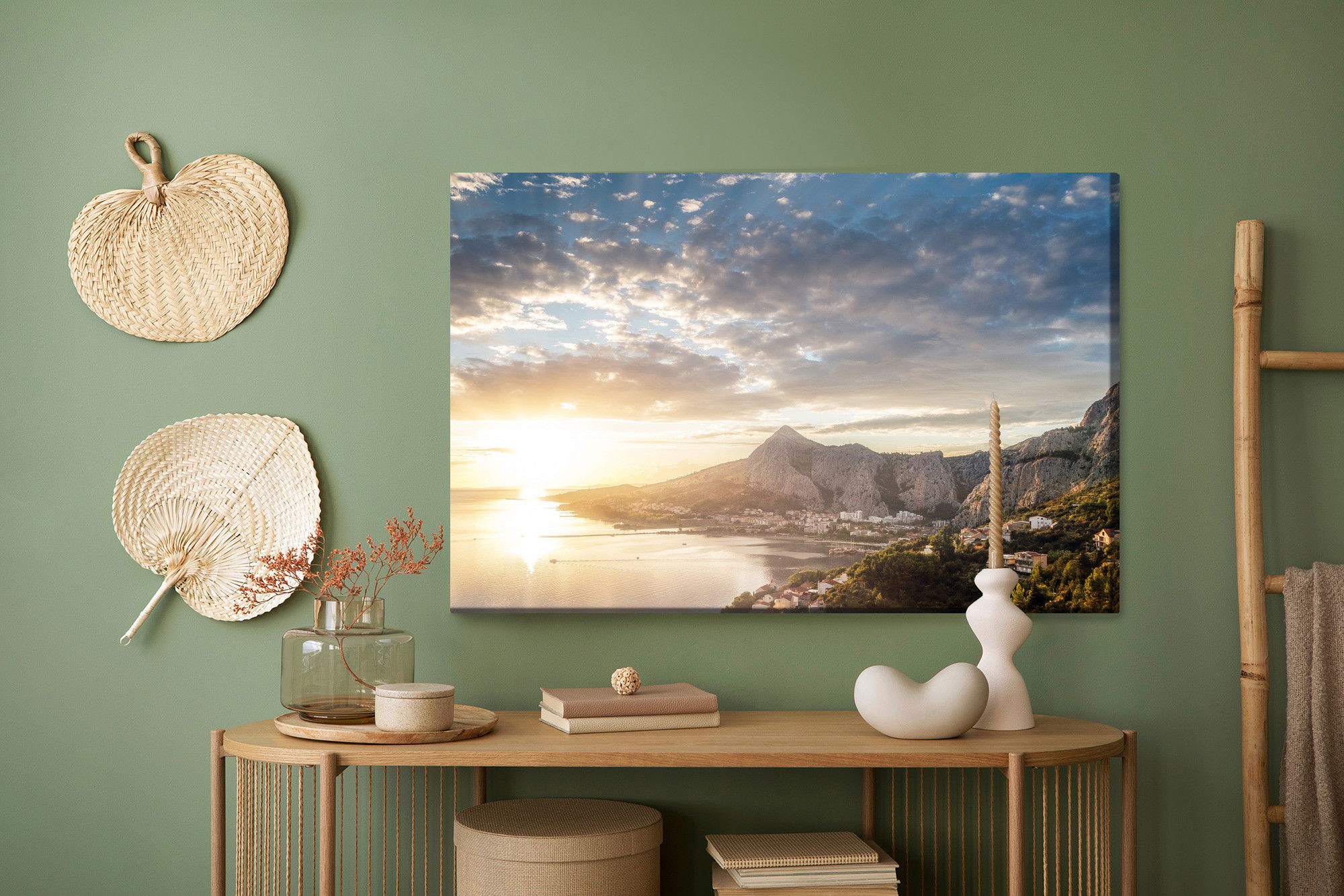 Placera tavlan där du upplever mycket eko eller hög ljudnivå, till exempel i öppna planlösningar, hemmakontor eller sociala ytor. Motiv i denna kategori gör sig särskilt bra i rum där du vill skapa en genomtänkt och sammanhängande känsla. Motiv med hav, vatten och horisonter ger rummet en lugn, djup känsla där mjuka färgskiftningar och ljusreflektioner förstärker atmosfären.