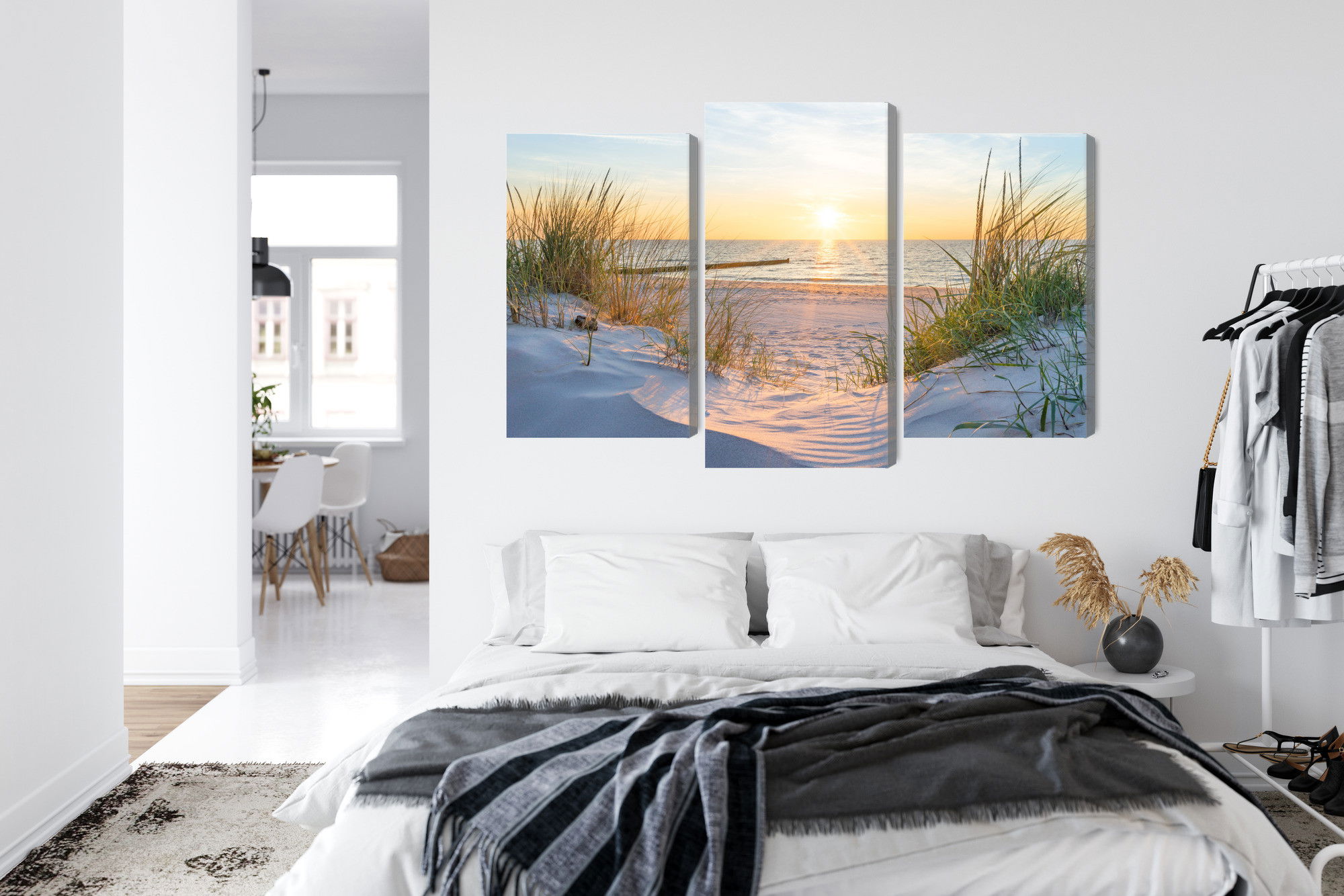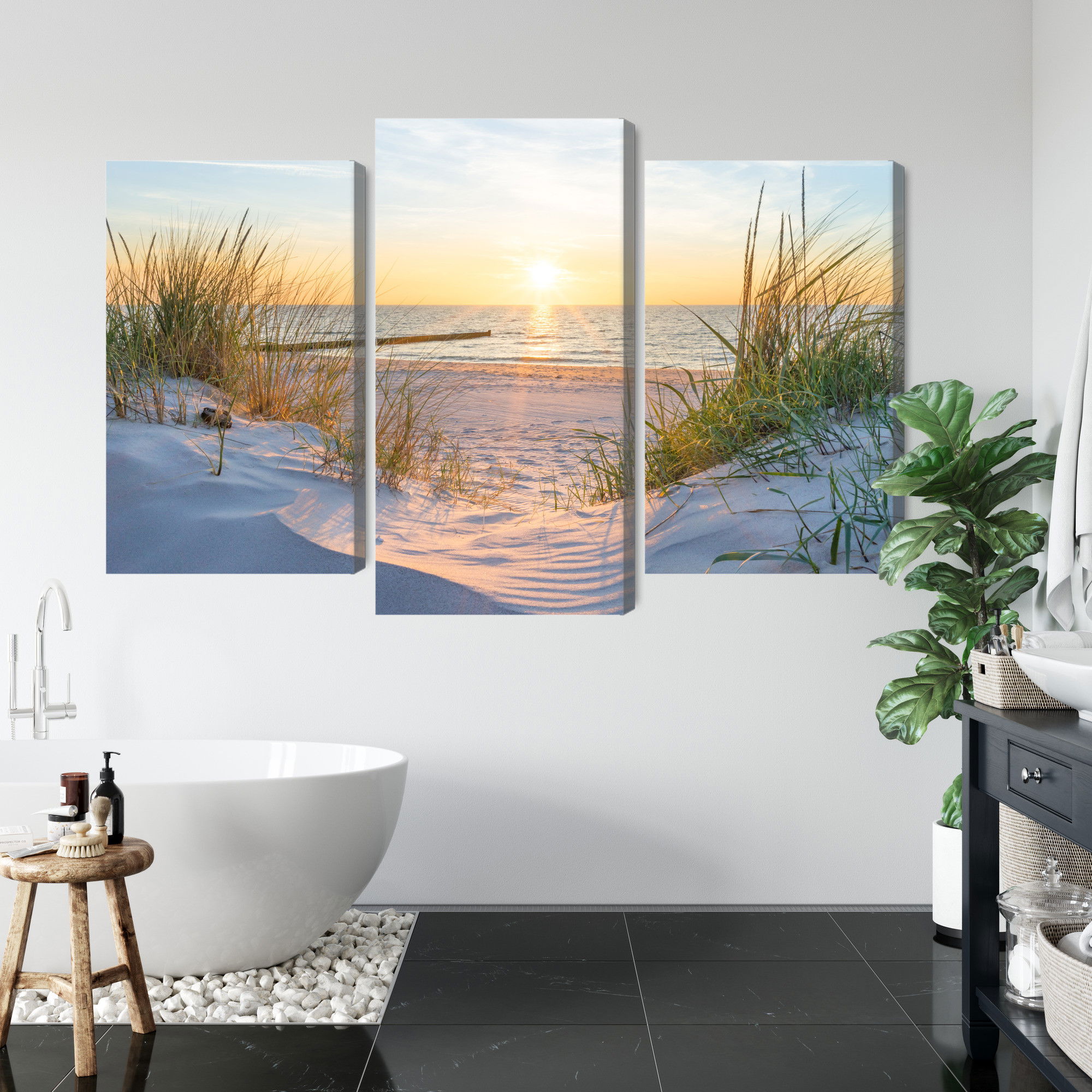 Varje tavla monteras på en massiv fururam. Format upp till 70×50 cm har en ram på 15 mm, medan format från 90×60 cm och uppåt har en ram på 20 mm. Den exakta dukspänningen gör att tavlan håller sin form över tid. Motivet Sunset on the baltic sea 3d trycks runt hela ramen vilket ger ett stilrent galleriuttryck där tavlan är lika vacker från sidan som framifrån. Kombinationen av rak dukspänning, rena linjer och korrekt tryck ger en professionell finish.
