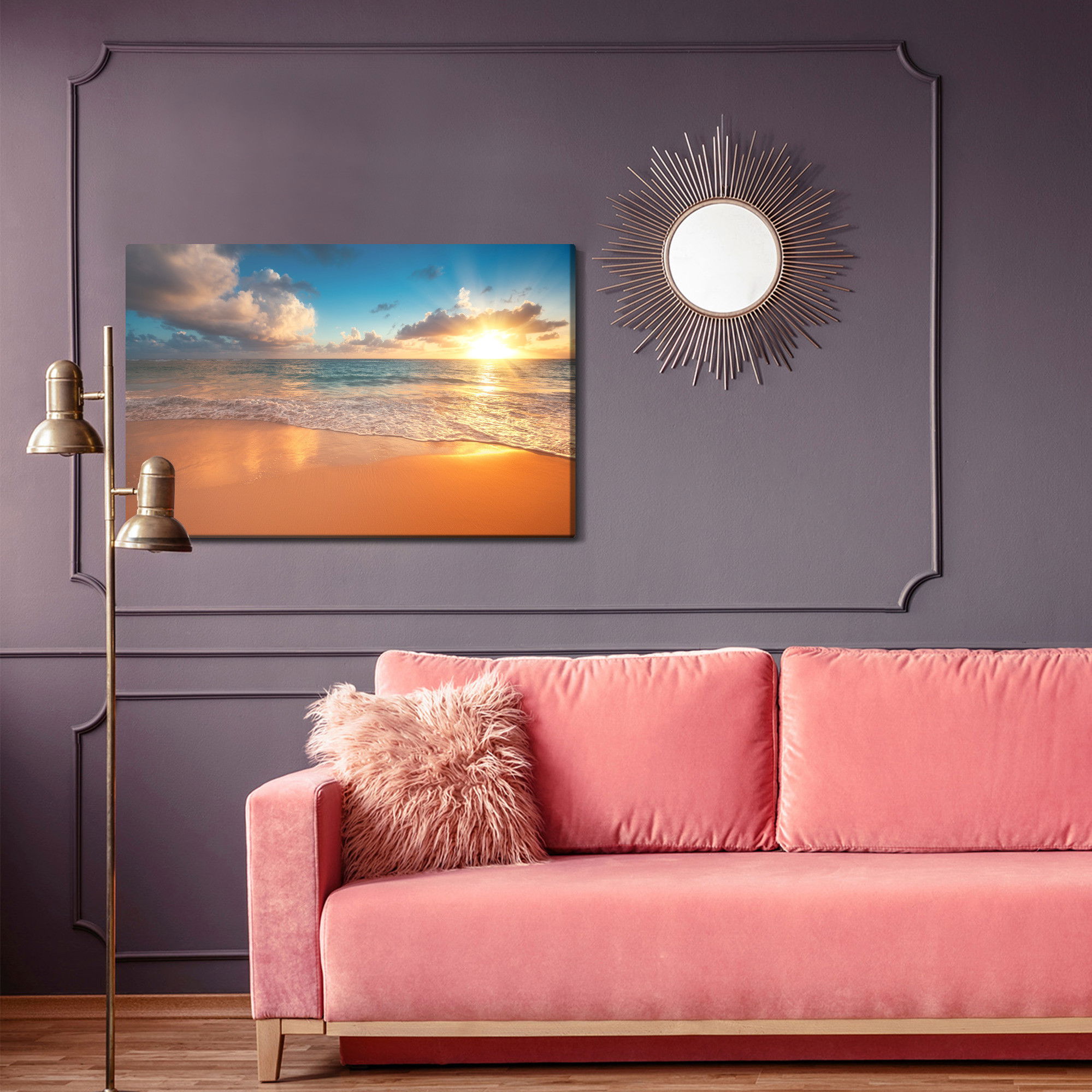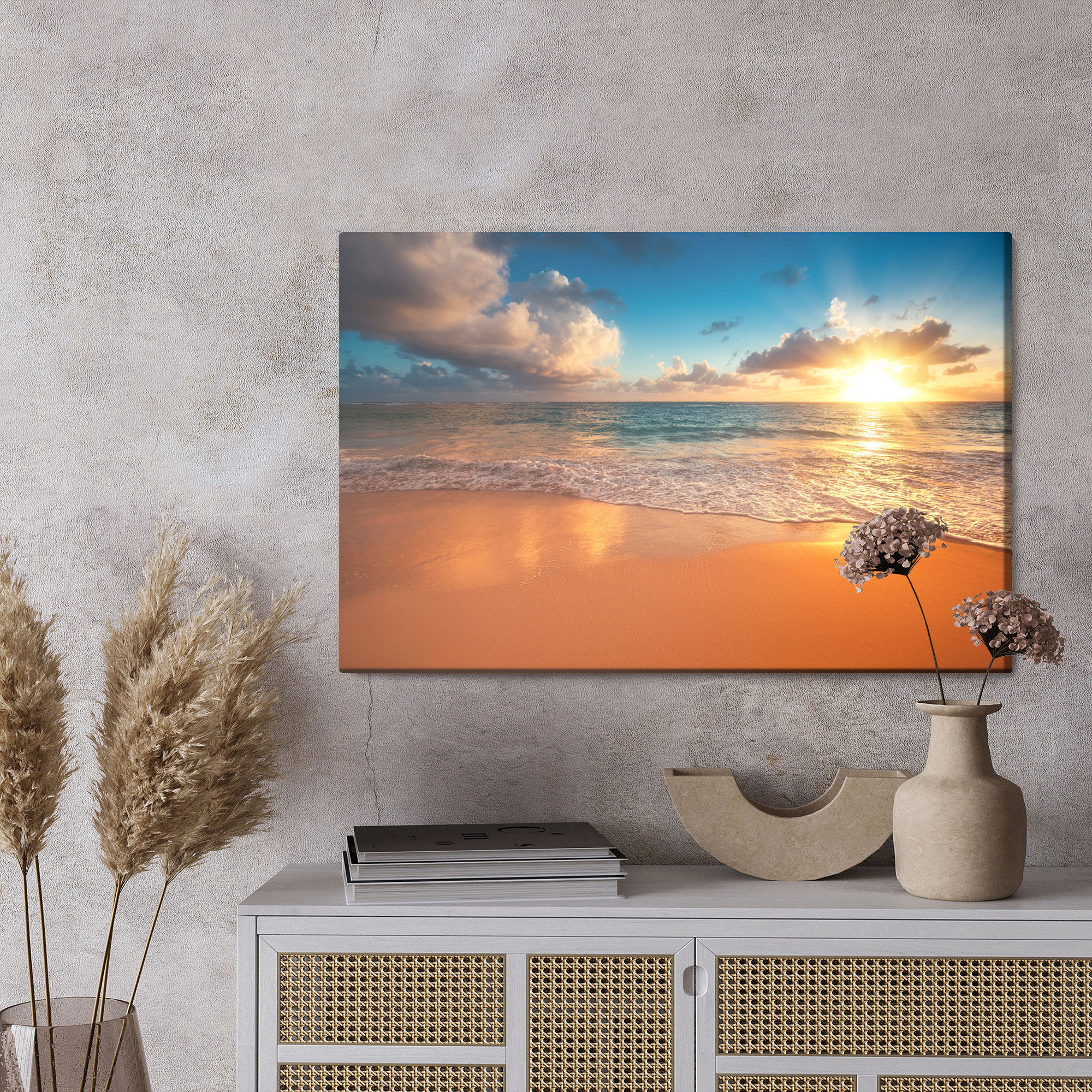 Ljuddämpande tavla – Sunset on the beach för lugnare rum och mjukare akustik