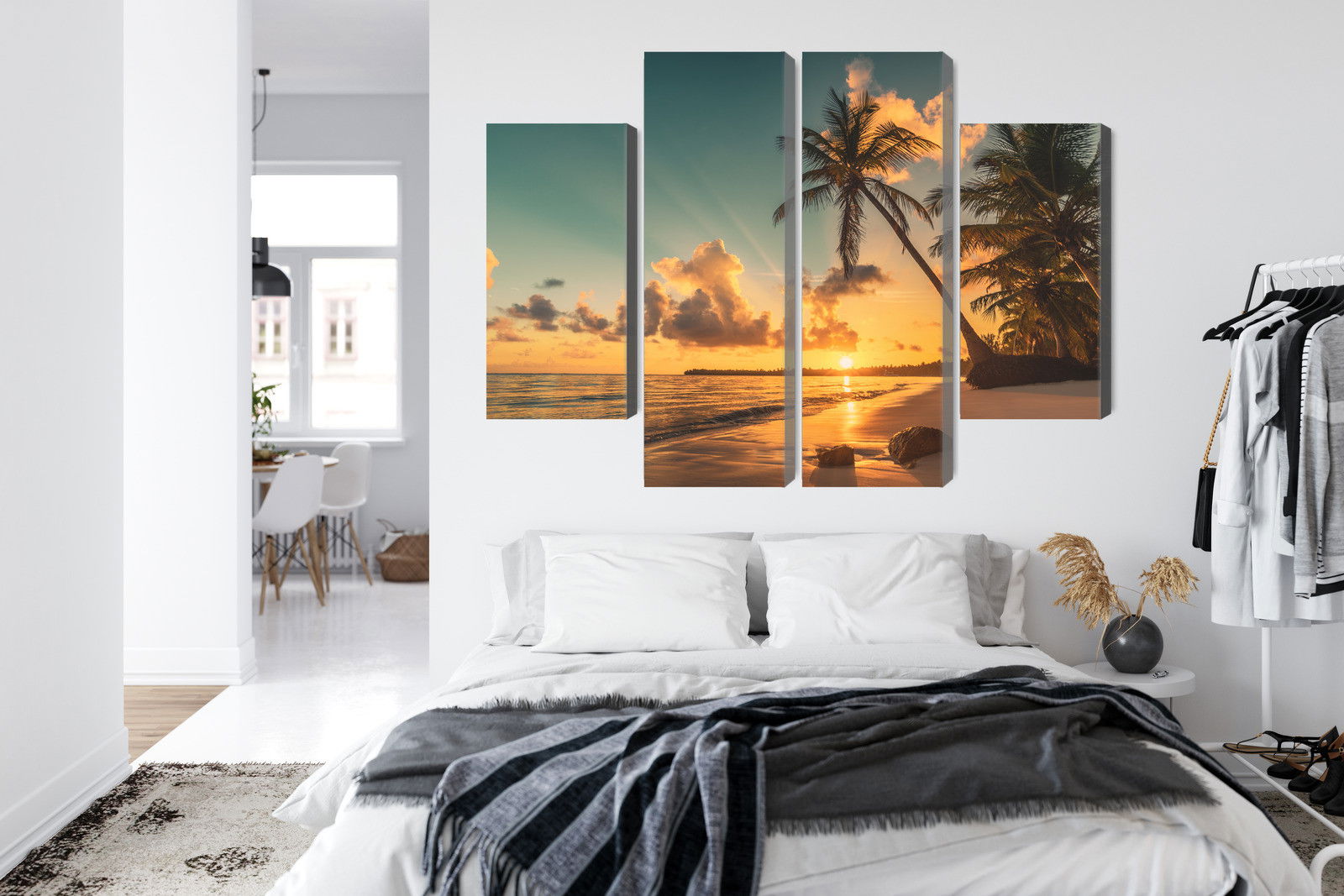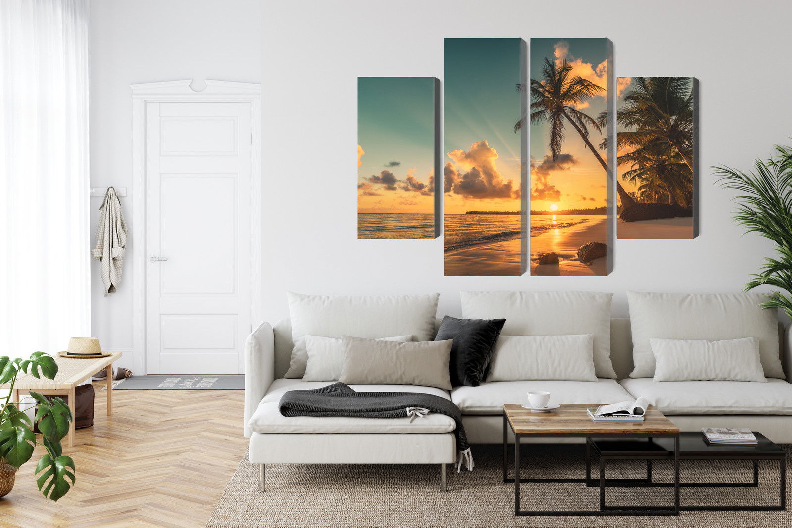 Ljuddämpande tavla – Sunset on the dominican beach för lugnare rum och mjukare akustik