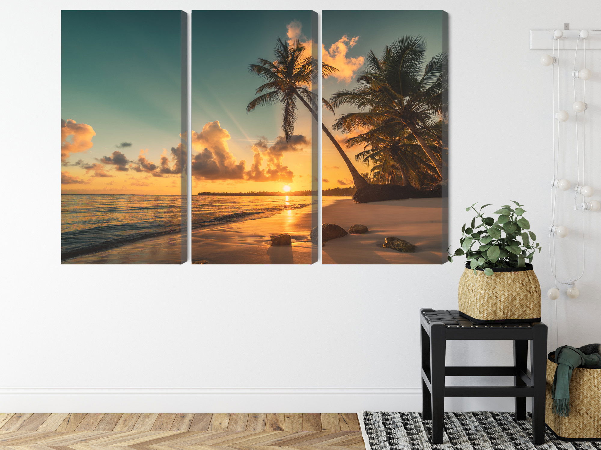 Ljuddämpande tavla – Sunset on the dominican beach för lugnare rum och mjukare akustik