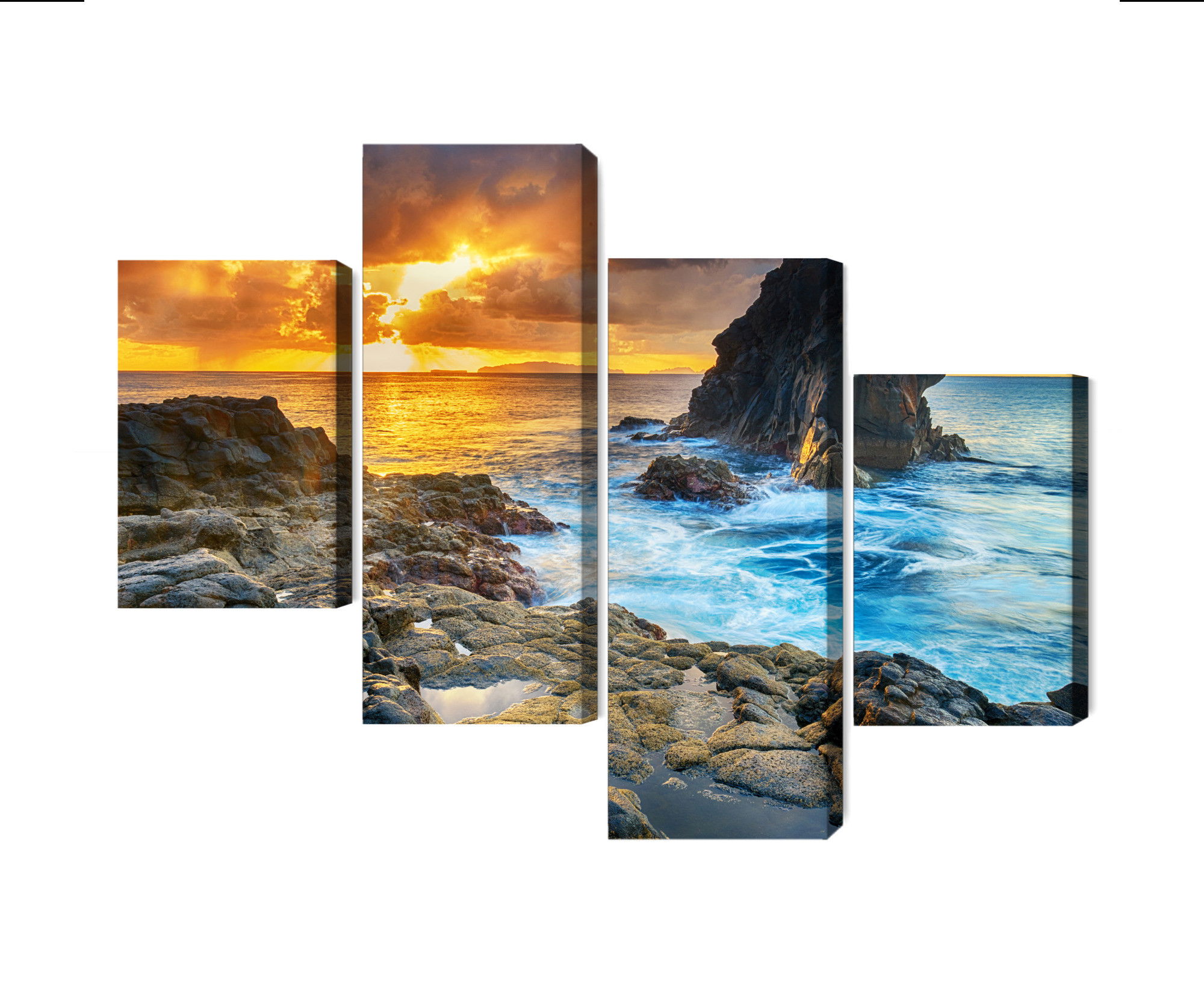 Motivet Sunset on the seashore återges med hög färgprecision och detaljrikedom tack vare HP Latex-teknologi. Trycket sker med vattenbaserade, luktfria och GREENGUARD Gold-certifierade bläck som ger en upplösning på upp till 300 DPI. Färgerna är UV-beständiga och behåller sin styrka även i ljusa rum, vilket gör tavlan lämplig för både hem- och offentliga miljöer.