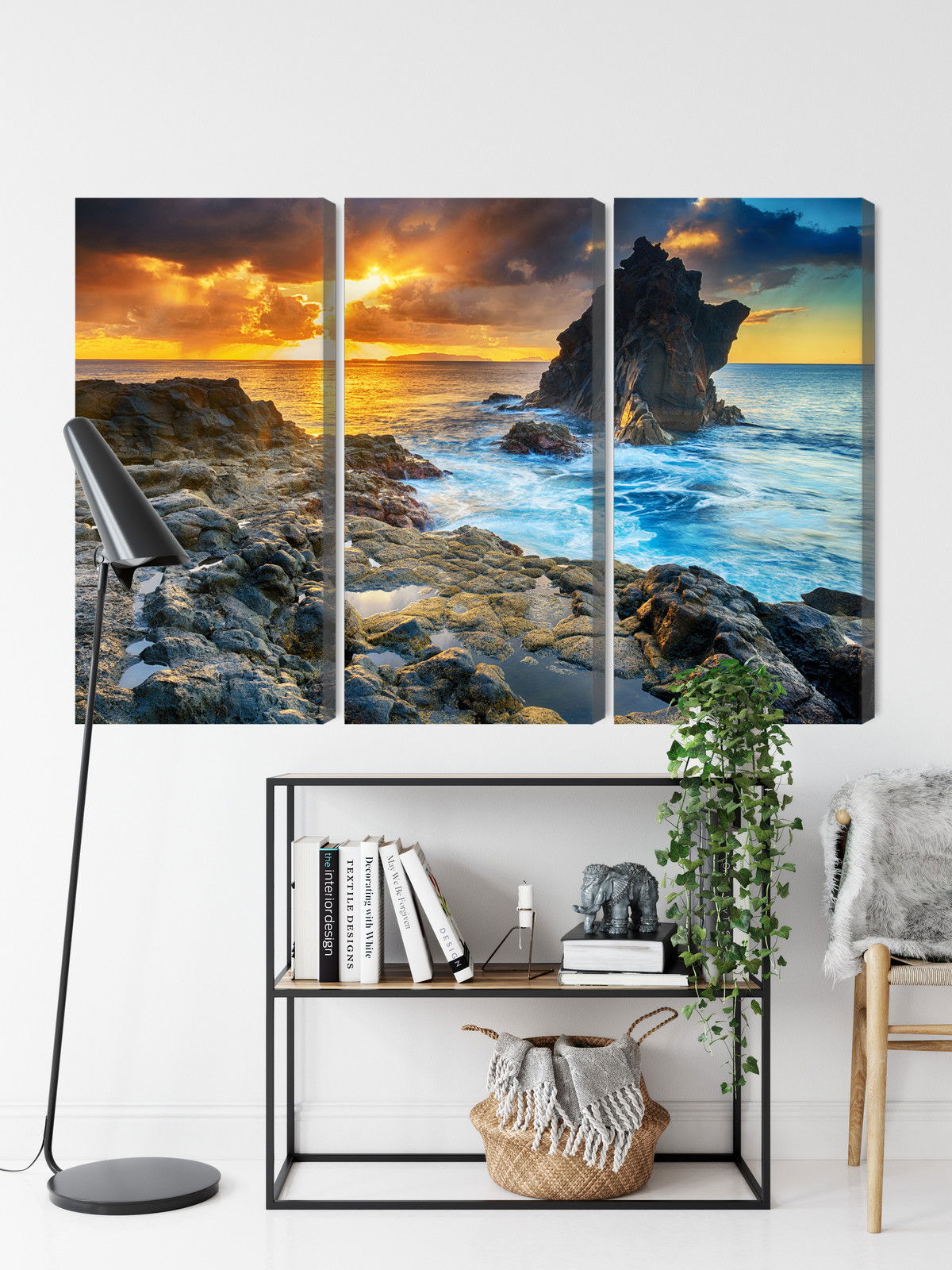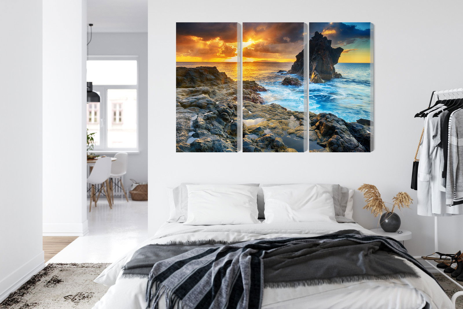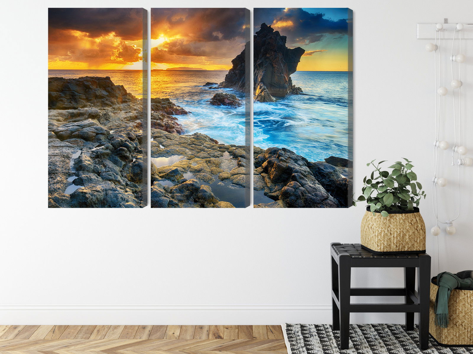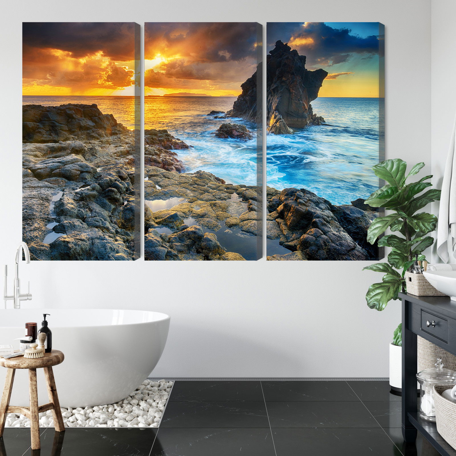 Motivet Sunset on the seashore återges med hög färgprecision och detaljrikedom tack vare HP Latex-teknologi. Trycket sker med vattenbaserade, luktfria och GREENGUARD Gold-certifierade bläck som ger en upplösning på upp till 300 DPI. Färgerna är UV-beständiga och behåller sin styrka även i ljusa rum, vilket gör tavlan lämplig för både hem- och offentliga miljöer.