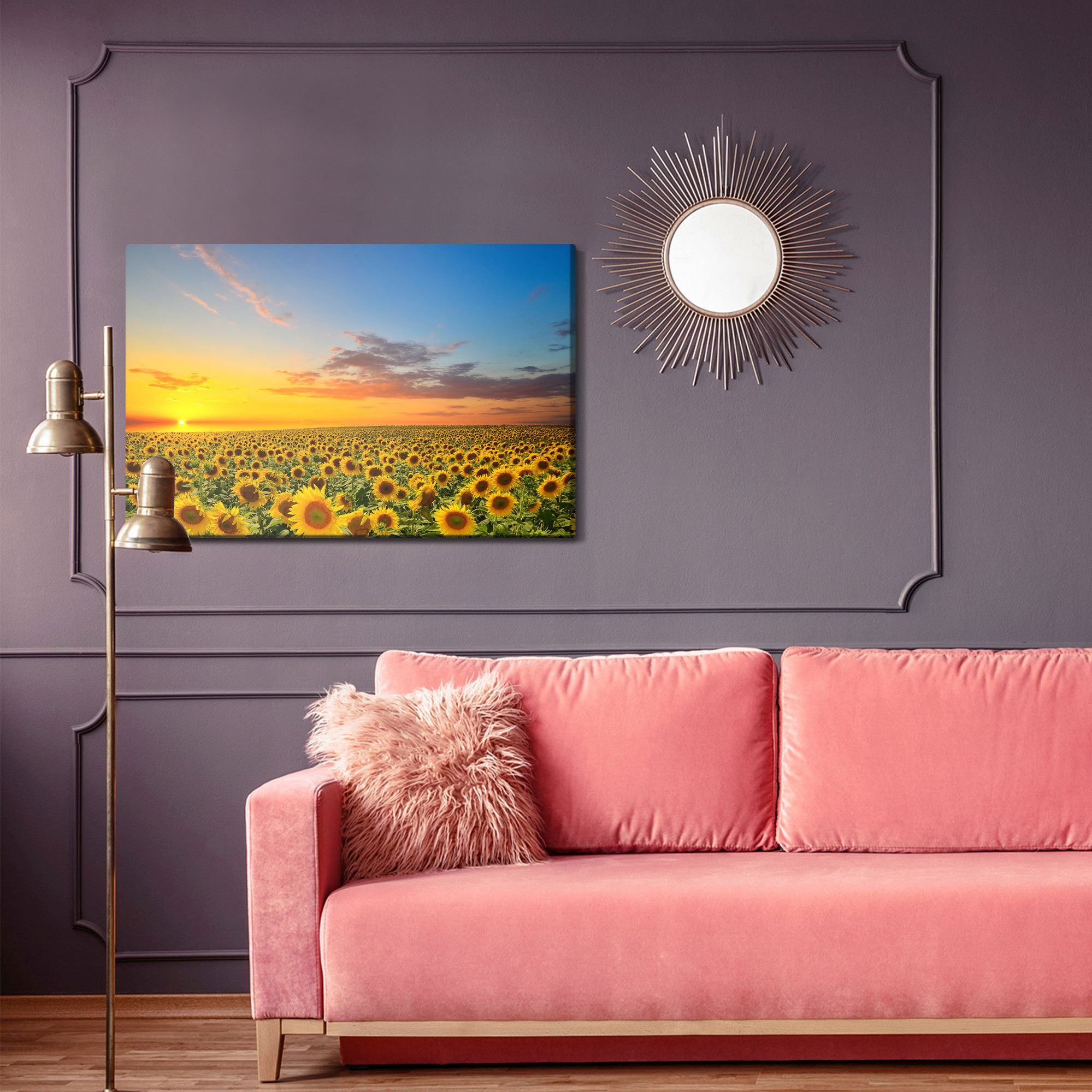 Ljuddämpande tavla – Sunset over a field för lugnare rum och mjukare akustik