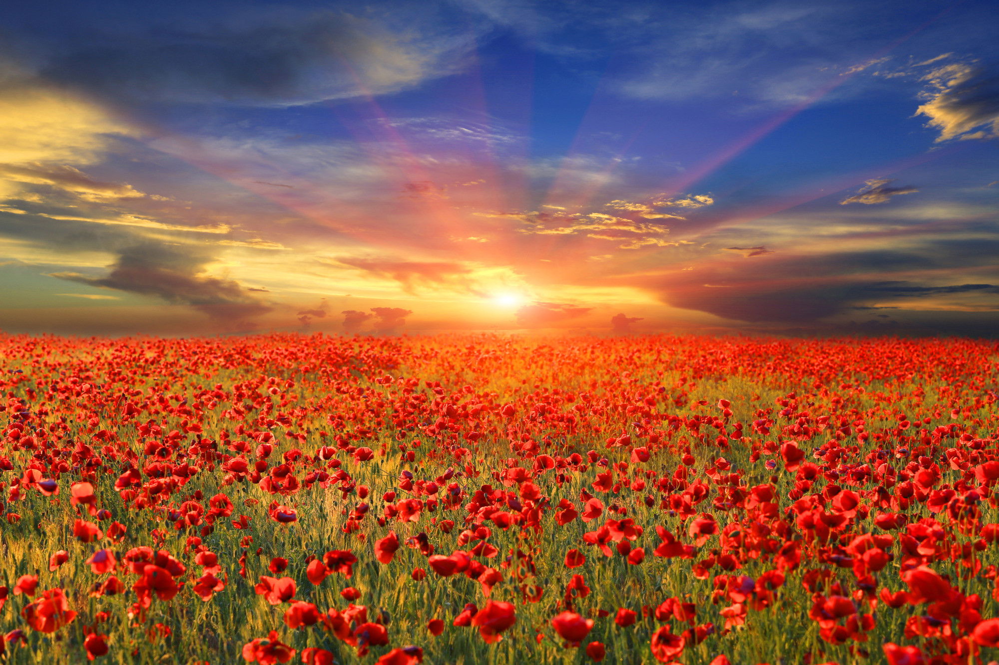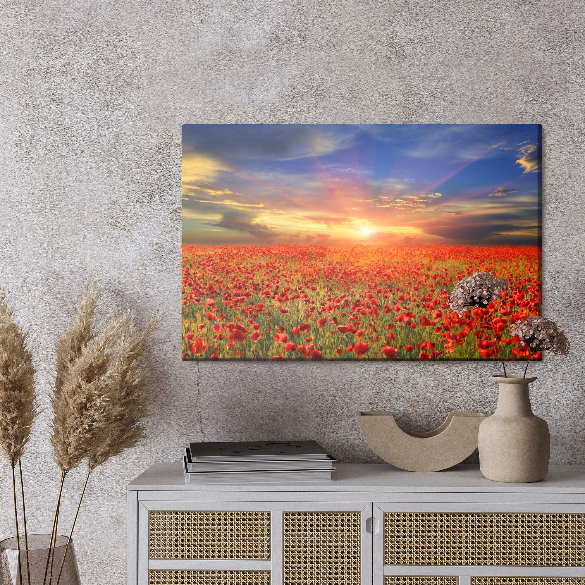 Ljuddämpande tavla – Sunset over a filed för lugnare rum och mjukare akustik