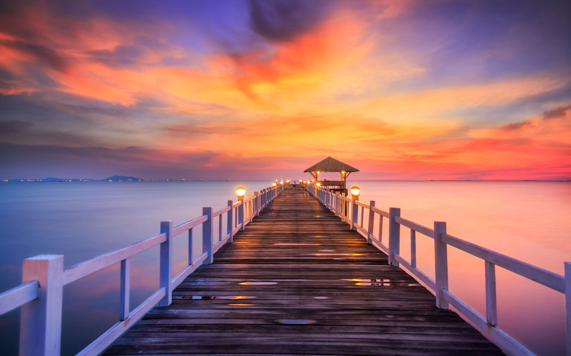 Ljuddämpande tavla – Sunset over the pier för lugnare rum och mjukare akustik