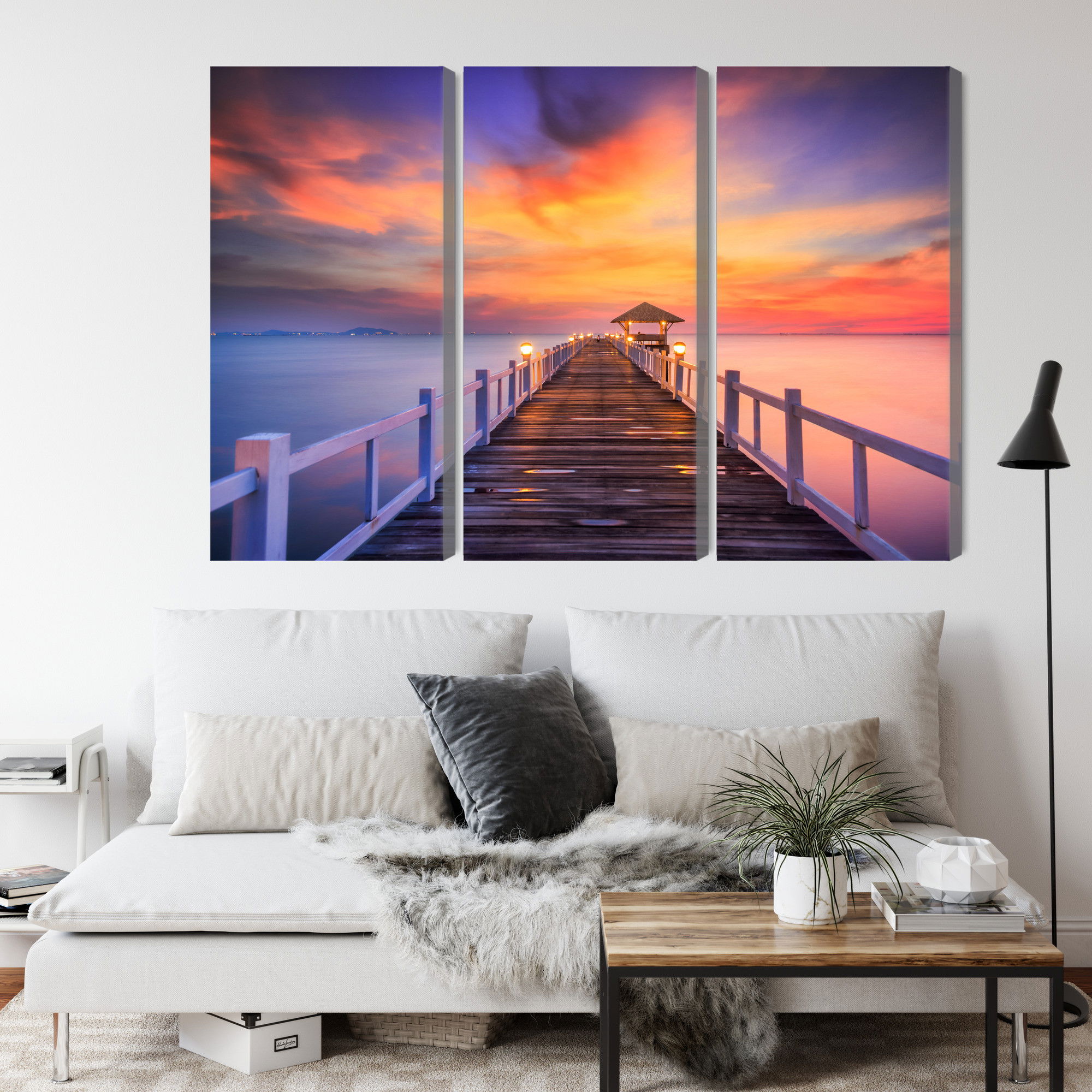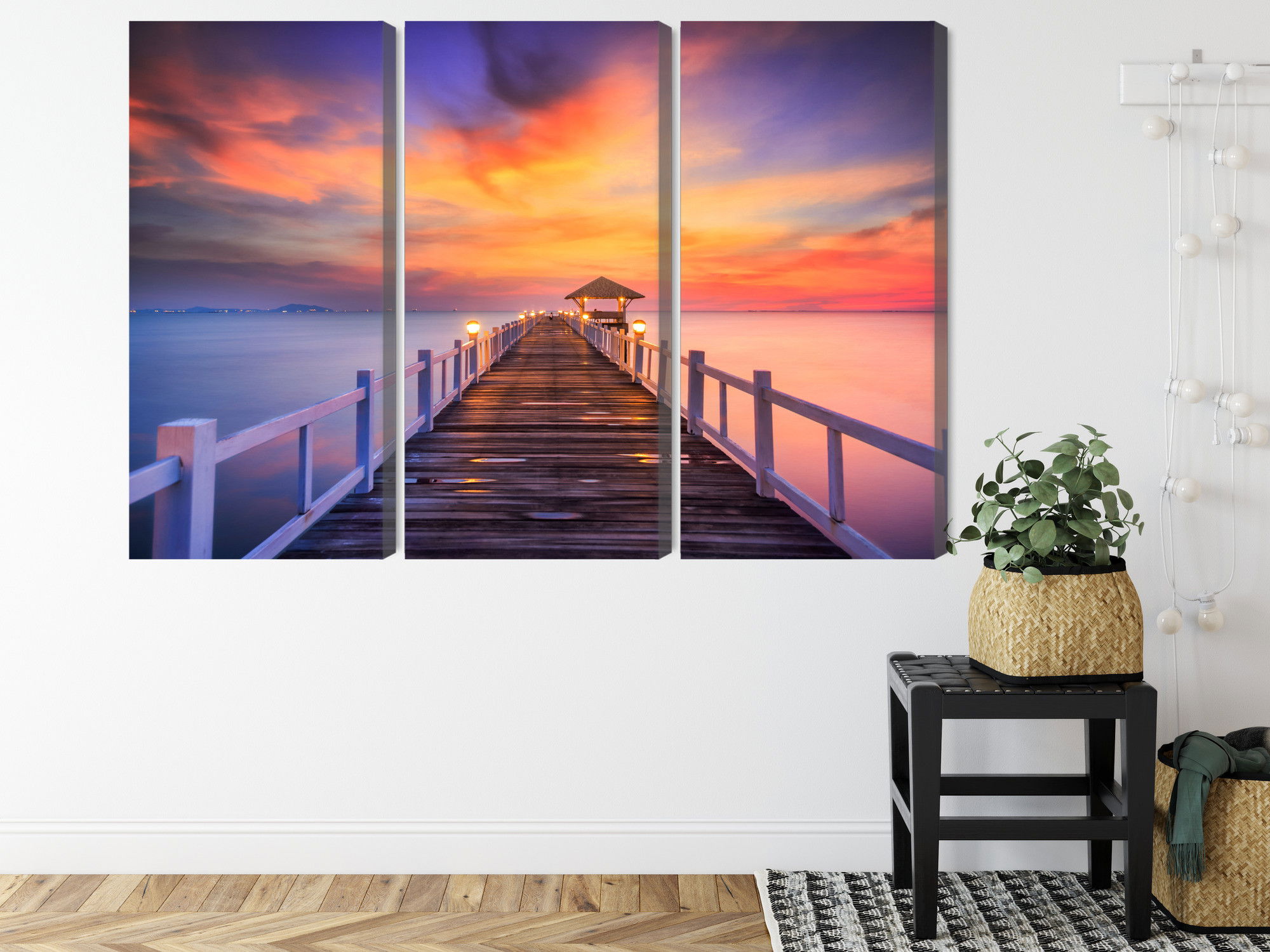 Ljuddämpande tavla – Sunset over the pier för lugnare rum och mjukare akustik