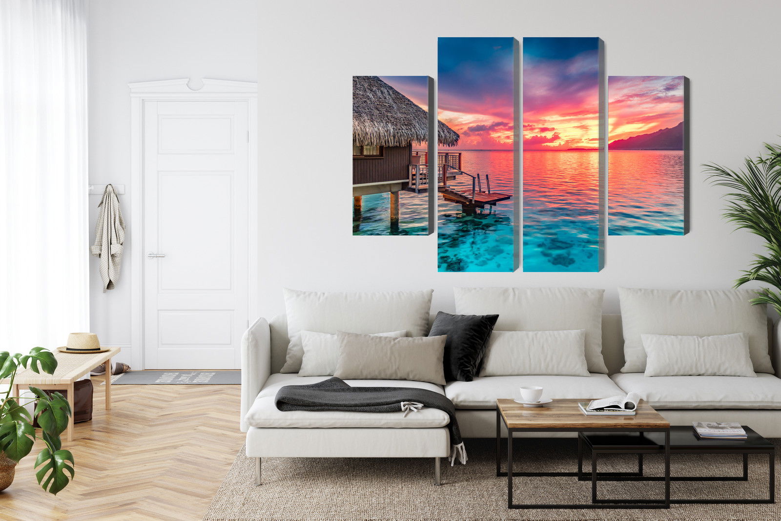 Motivet Sunset over the south pacific återges med hög färgprecision och detaljrikedom tack vare HP Latex-teknologi. Trycket sker med vattenbaserade, luktfria och GREENGUARD Gold-certifierade bläck som ger en upplösning på upp till 300 DPI. Färgerna är UV-beständiga och behåller sin styrka även i ljusa rum, vilket gör tavlan lämplig för både hem- och offentliga miljöer.