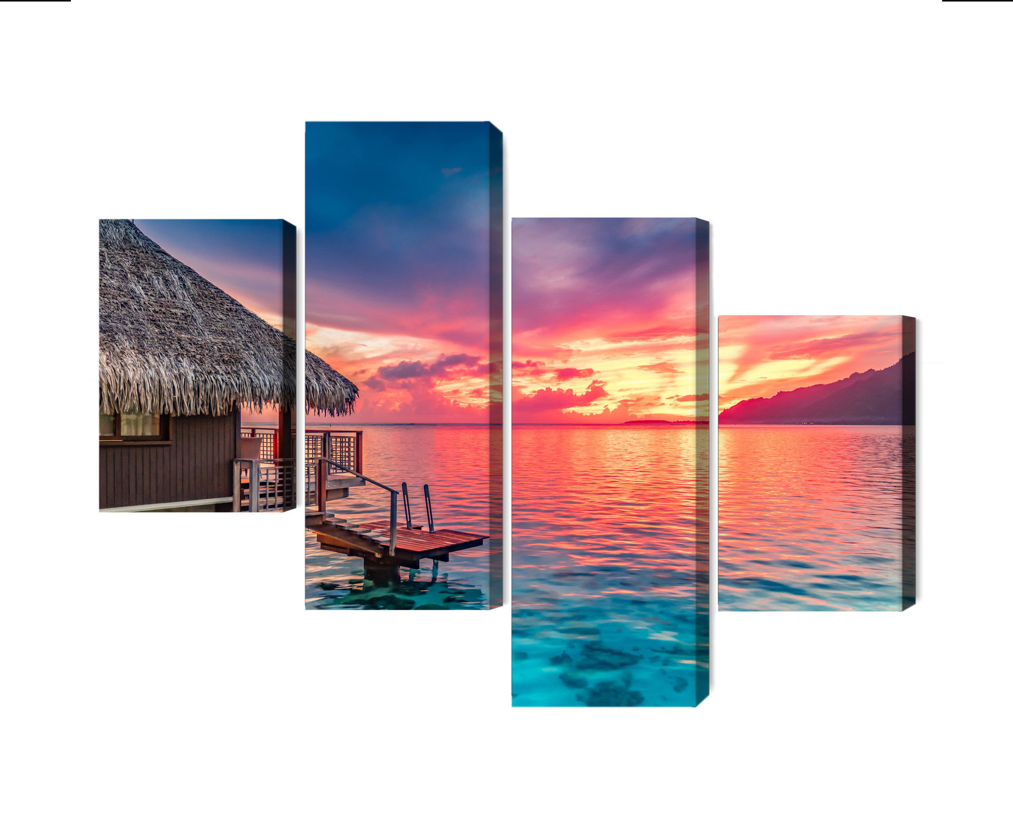 Varje tavla monteras på en massiv fururam. Format upp till 70×50 cm har en ram på 15 mm, medan format från 90×60 cm och uppåt har en ram på 20 mm. Den exakta dukspänningen gör att tavlan håller sin form över tid. Motivet Sunset over the south pacific trycks runt hela ramen vilket ger ett stilrent galleriuttryck där tavlan är lika vacker från sidan som framifrån. Kombinationen av rak dukspänning, rena linjer och korrekt tryck ger en professionell finish.