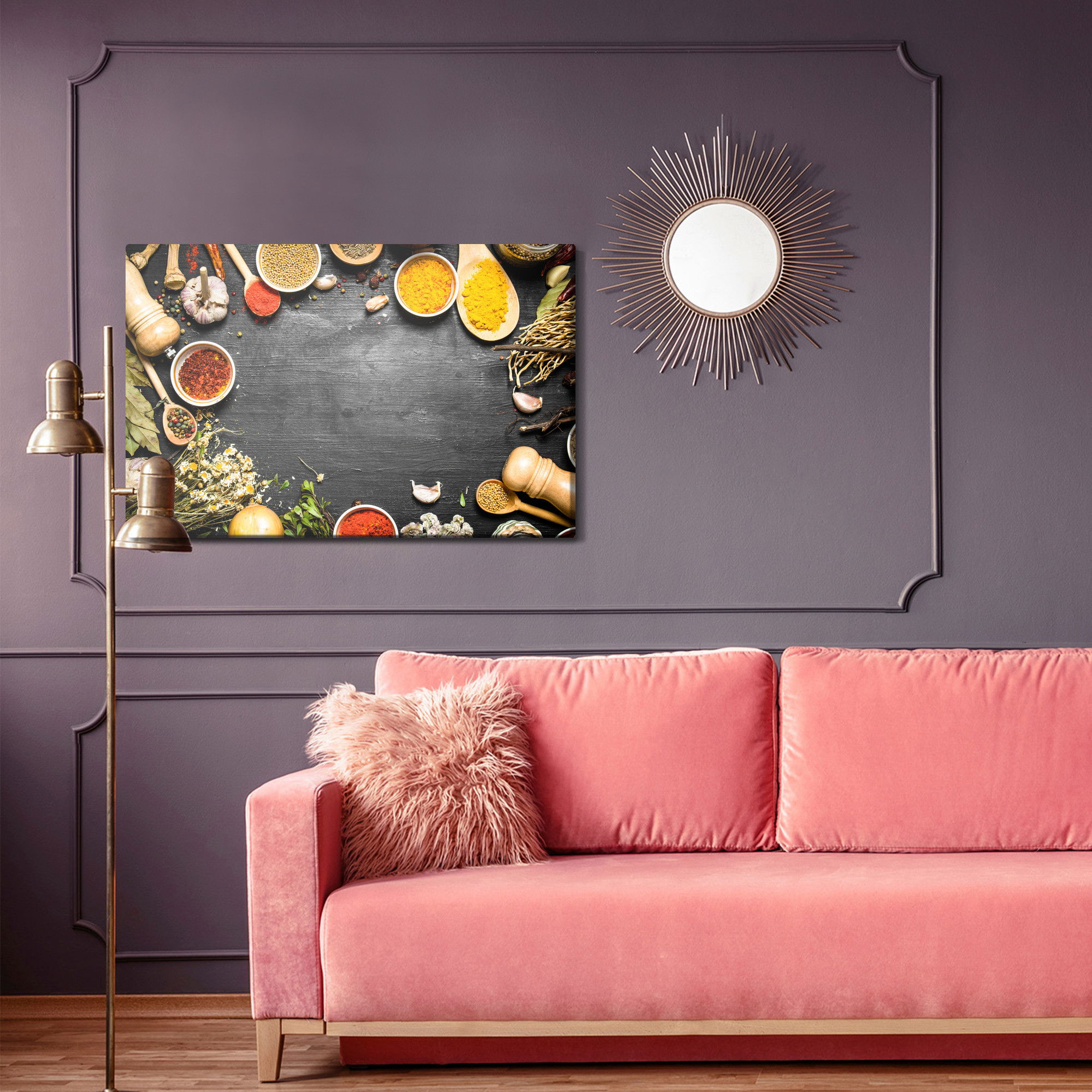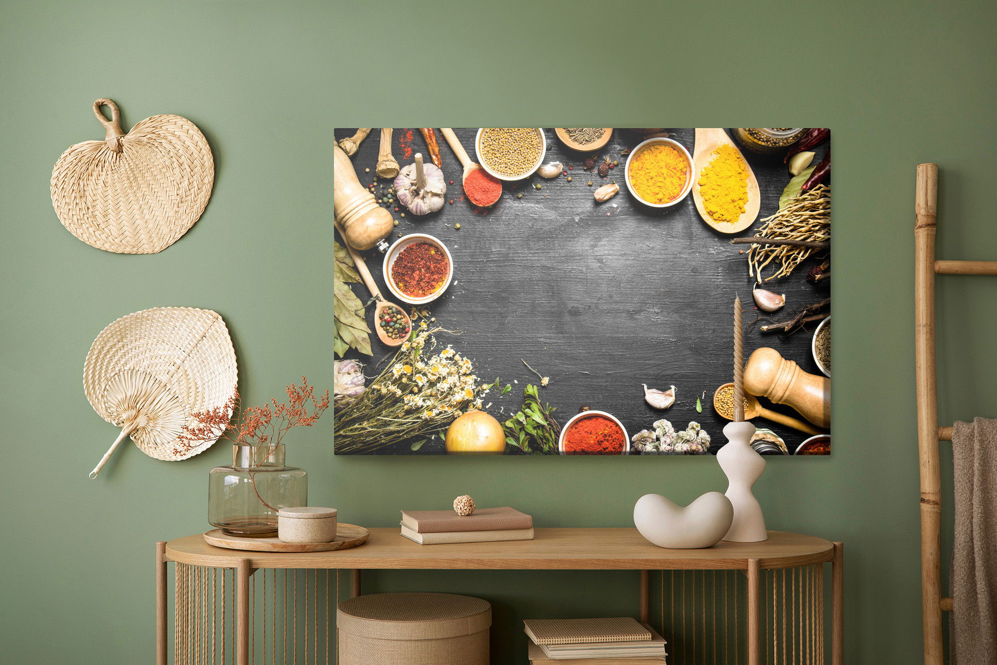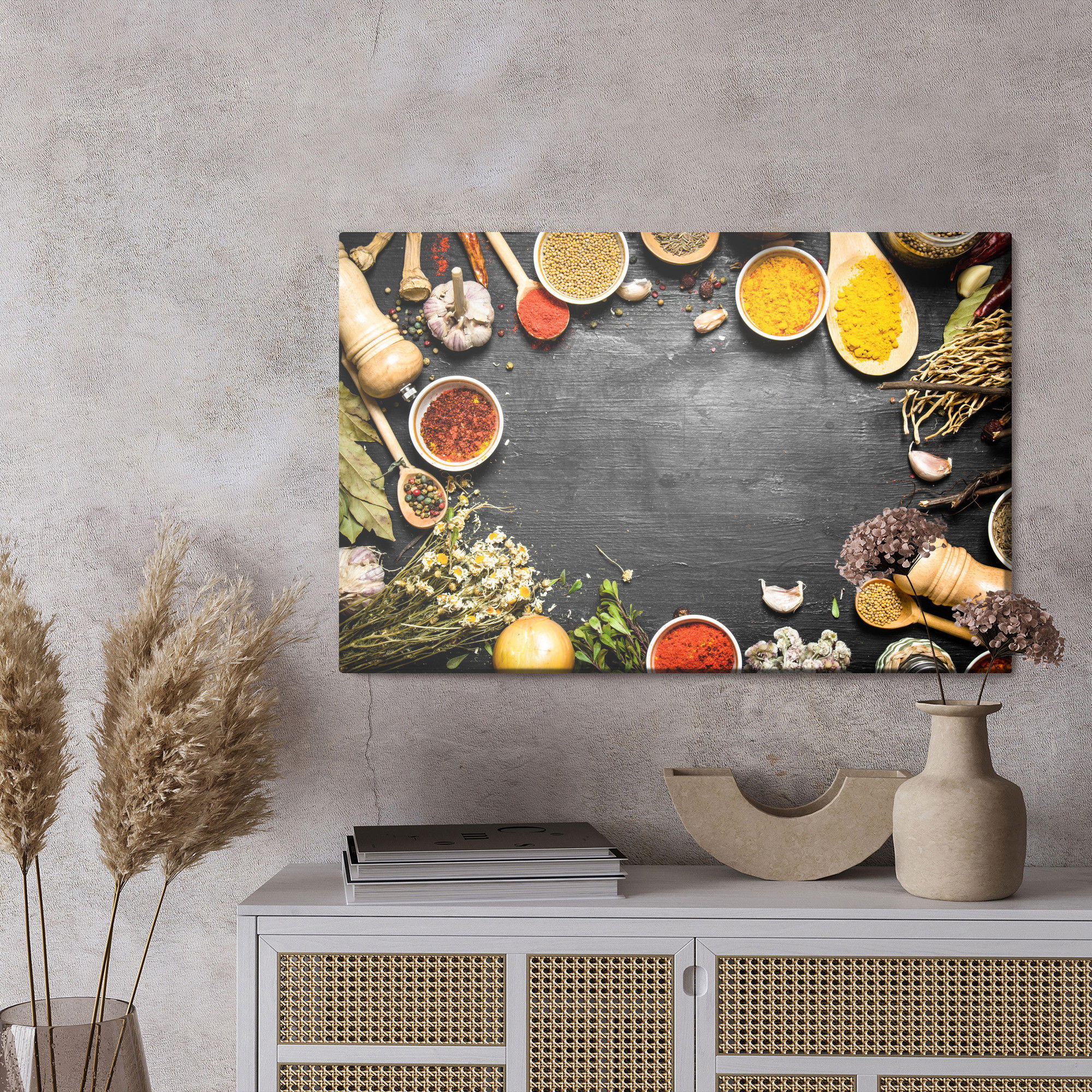 Ljuddämpande tavla – Table with herbs and spices för lugnare rum och mjukare akustik